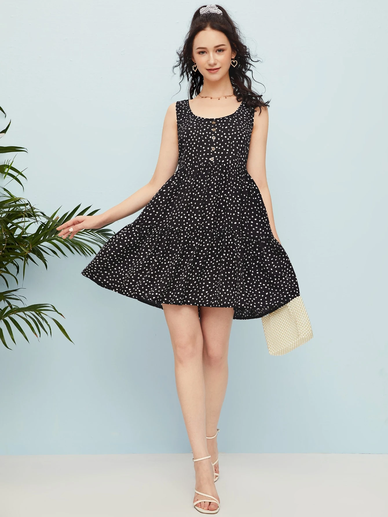 Allover Print Button Sundress