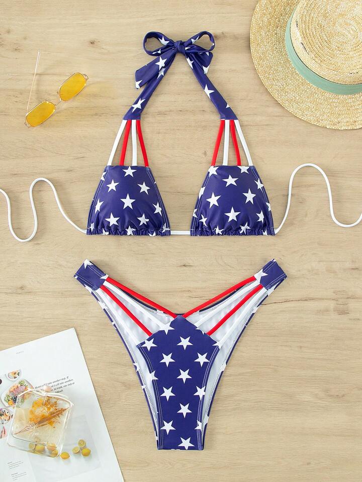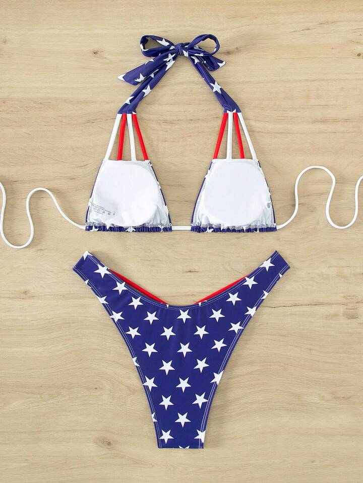 Americana Print Halter Triangle Bikini Set For Summer Beach