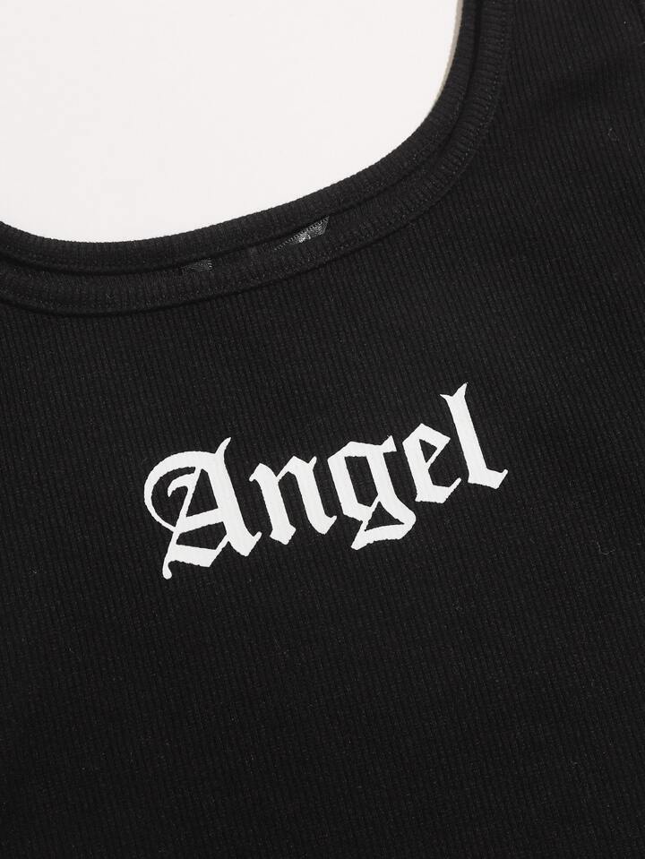 Angel Graphic Cropped Tank Top