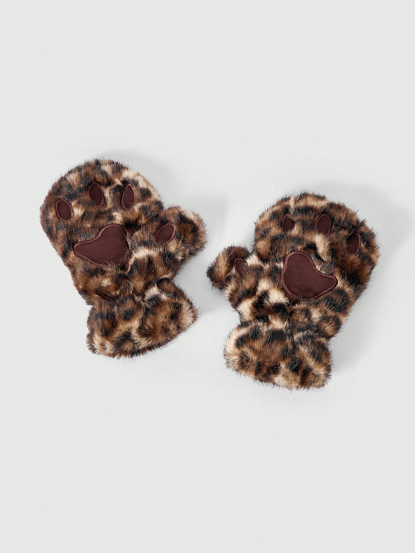 Anime 1 Pair Brown Y2K Millennium Kawaii Cute Leopard Faux Fur Paw Fingerless Gloves, Fashionable And Warm Accessory Suitable For School, Shopping, Workout, Commute, Date, Casual Wear