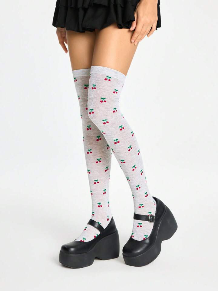 Anime 1 Pair Dark Grunge Cute Cherry Over-The-Knee Socks