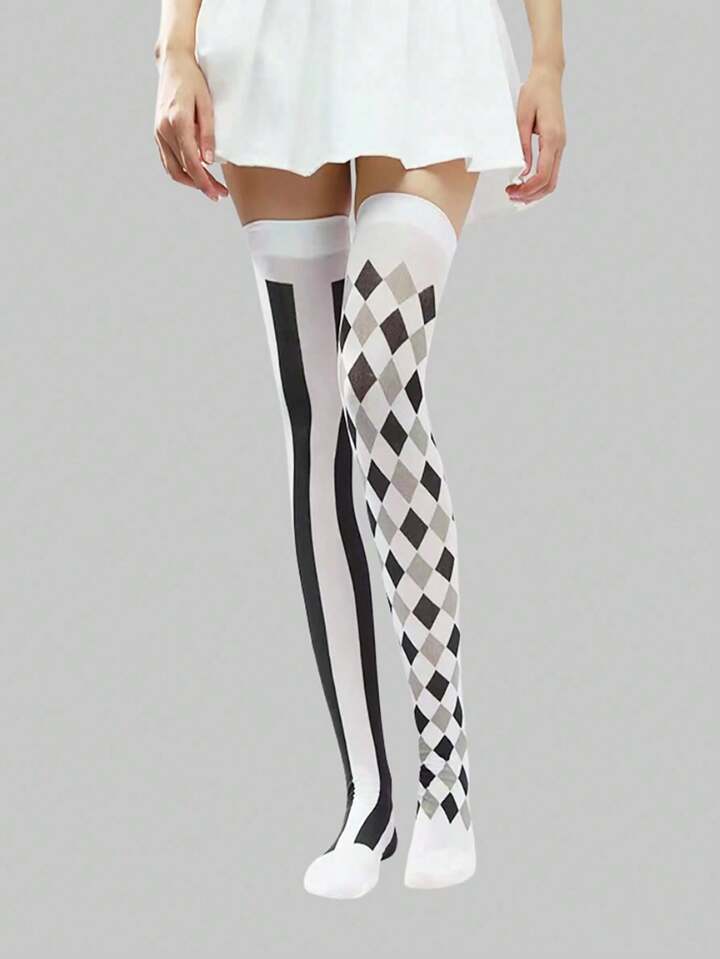Anime 1 Pair Women Rhombus Pattern Thigh-High Stockings, All Season
