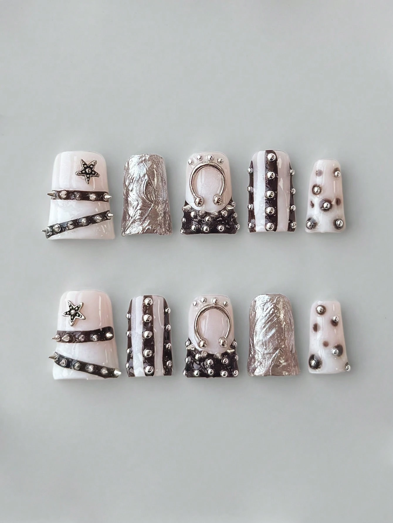 Anime 10 Pieces Of Punk Short Duckbill Fake Nail + 3 Pieces Of Nail Double-Sided Tape, Y 2 K Rivets, High-Quality False Nails, Niche Contrasting Color Manicure, Reusable Manicure In All Seasons, Suitable For Daily, Party, Dance Wear