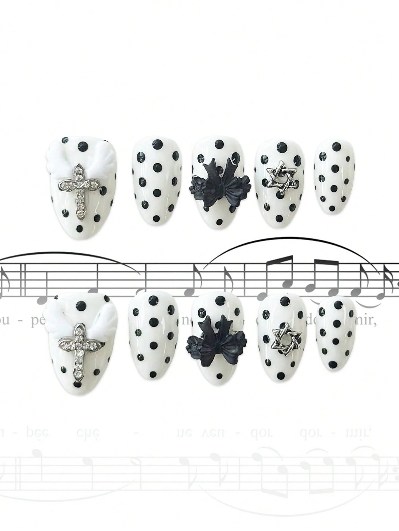 Anime 10 Pieces Of Cute Style Bow Polka Dot Element High-Quality Hand-Painted Fake Nail Pieces + 3 Pieces Of Double-Sided Tape, Retro Style Removable Short Almond-Shaped Wearing Armor, Reusable High-Quality Glossy Nail Polish Fake Nail Pieces In All Seasons, Suitable For Holiday Parties, Dances And Daily Wear.