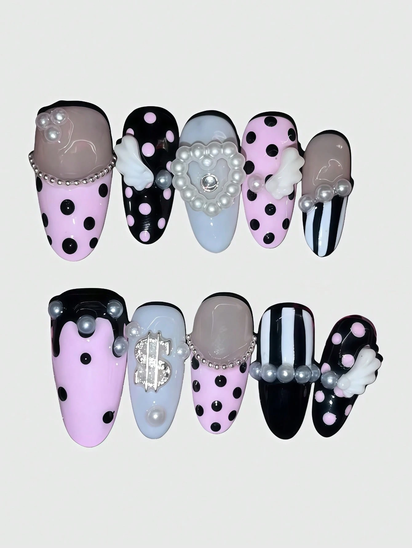 Anime 10pcs Y2K Retro Star, Polka Dot, Striped, Pop Art, Grunge, Music Note Decorative False Nails, Handmade, Suitable For College, Music Festivals, Dates, Etc.