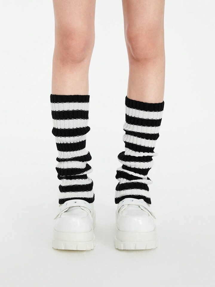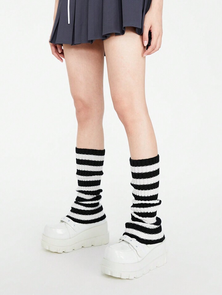 Anime 1pair Black & White Striped Women's Leg Warmers