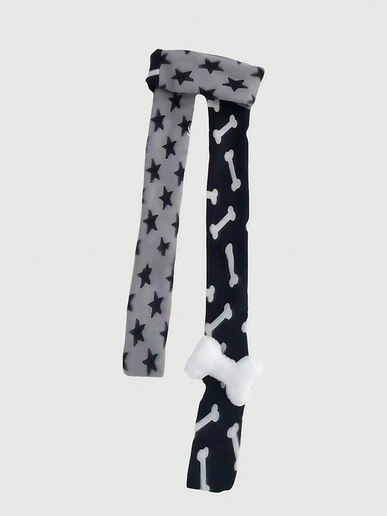 Anime 1pc Black & Grey Y2K Punk Style Star & Bone Patchwork Knitted Scarf, Suitable For Keeping Warm And Daily Matching