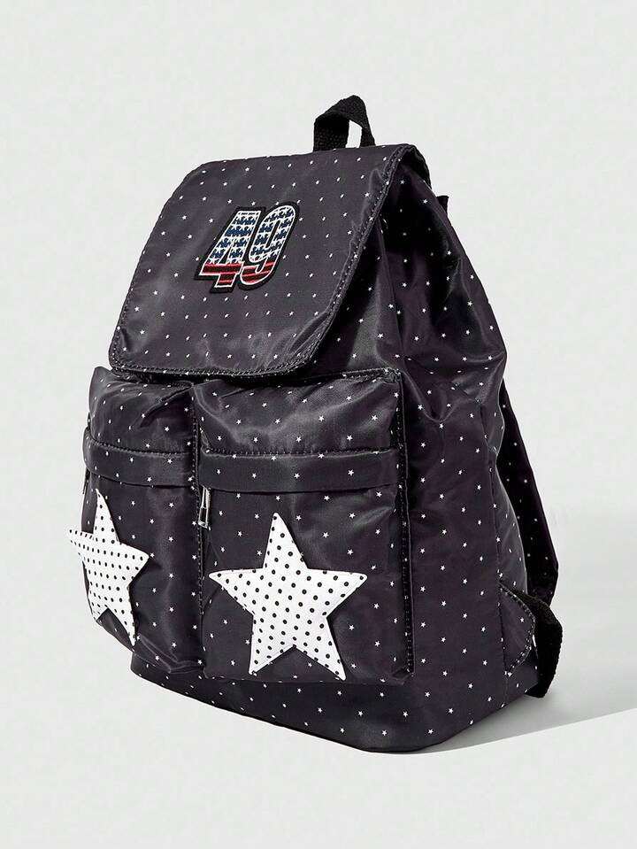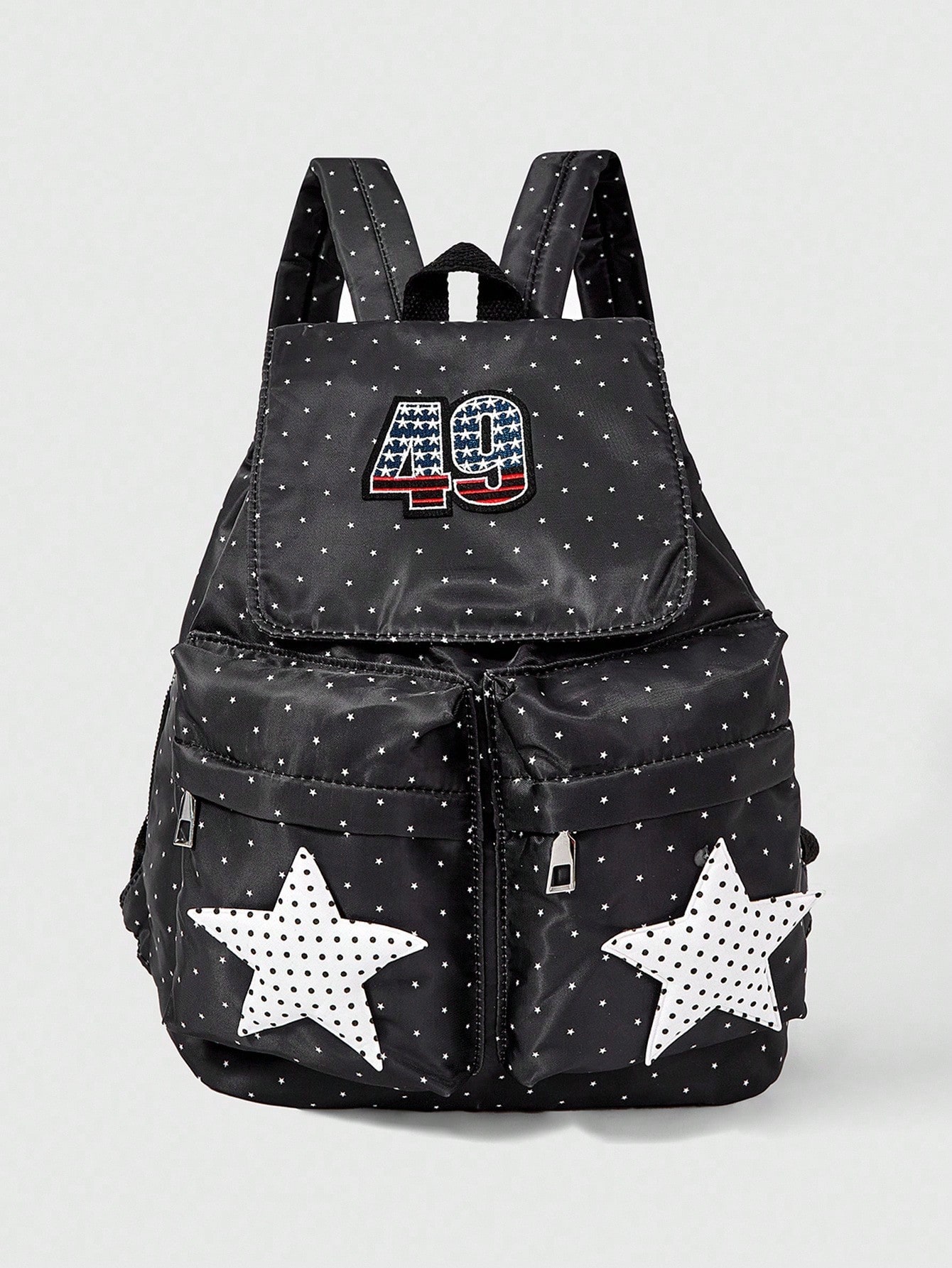 Anime 1pc Black Y2K Cute Star Print Multi-Pocket Numeric Embroidery Women Fashion Backpack, Suitable For School, Commuting, Etc.