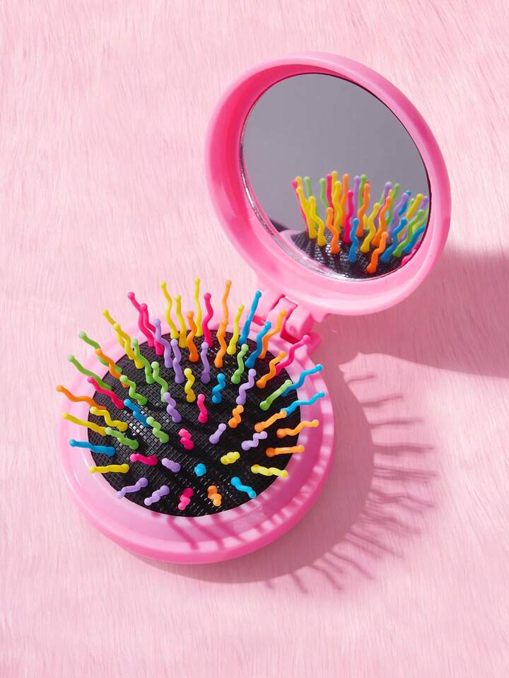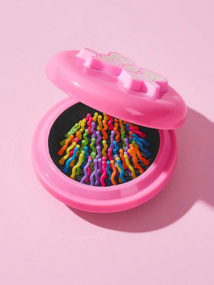 Anime 1pc Bow Pattern Foldable Cushion Hair Brush With Mirror