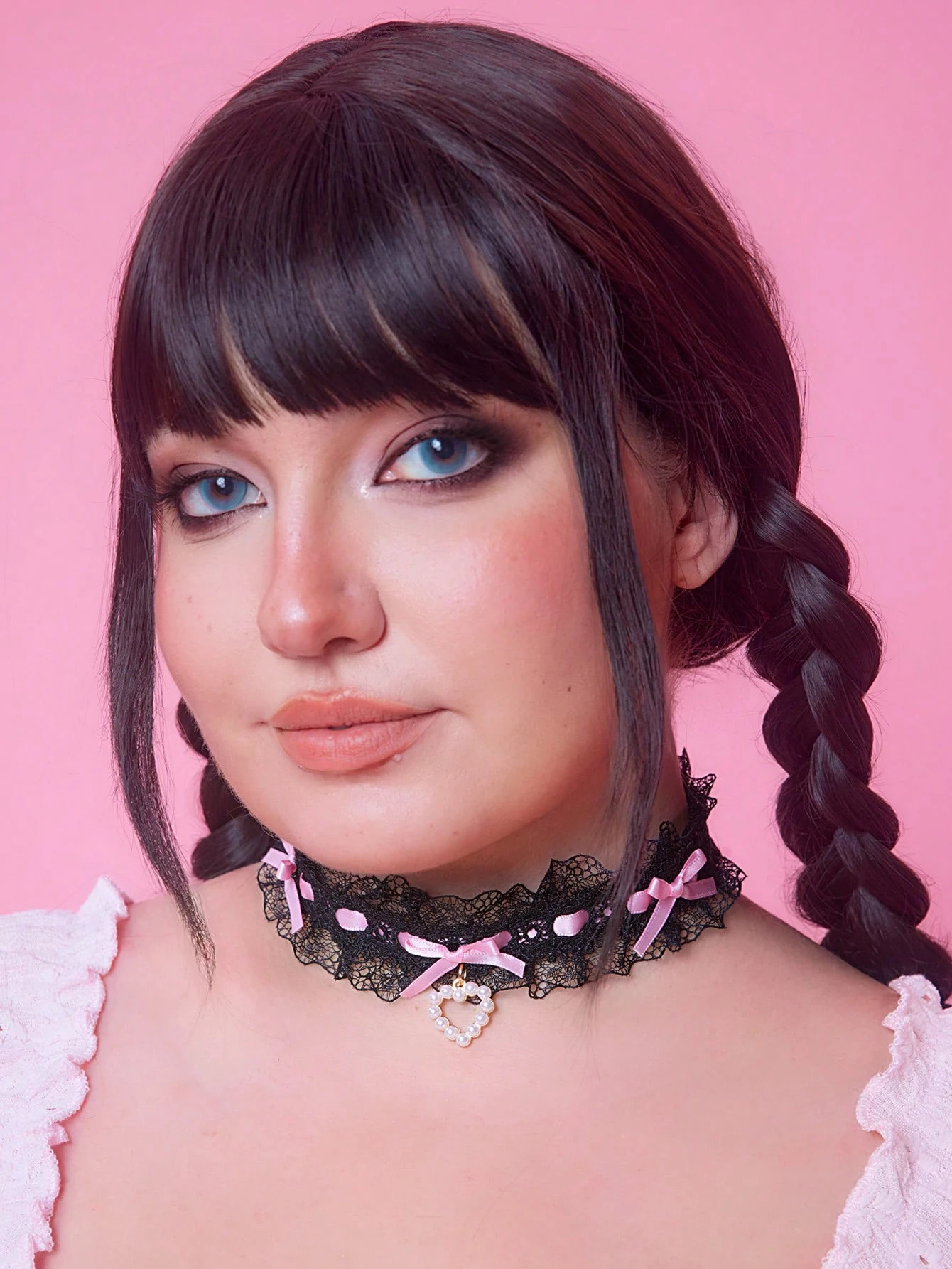 Anime 1pc Cute Lace Ruffled Collar Necklace, Lolita Bow Heart Necklace, Contrast Color Unique Design Adjustable Neck Accessory