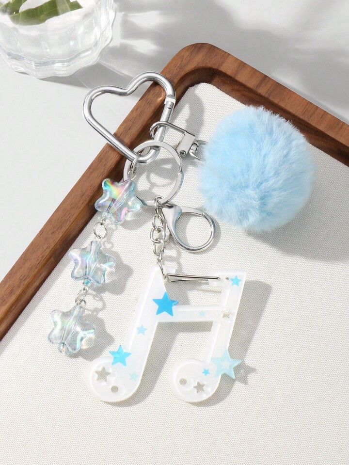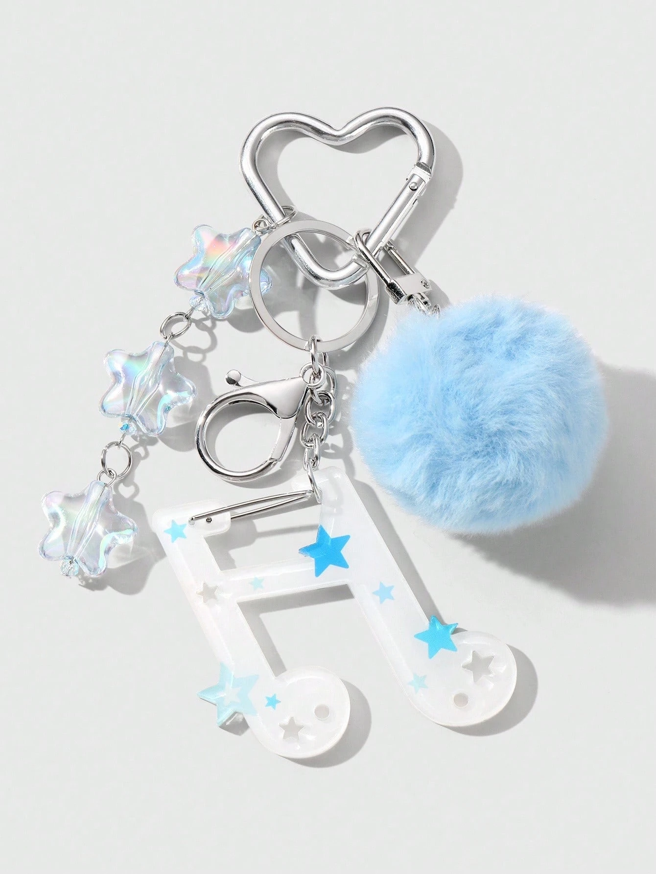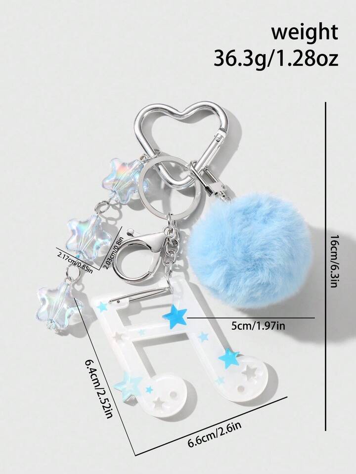 Anime 1pc , Minimalist, High-Quality Blue Fuzzy Ball, Acrylic Star & Music Note DIY Keychain & Bag Charm, Suitable For Women, Daily Wear Or Gift