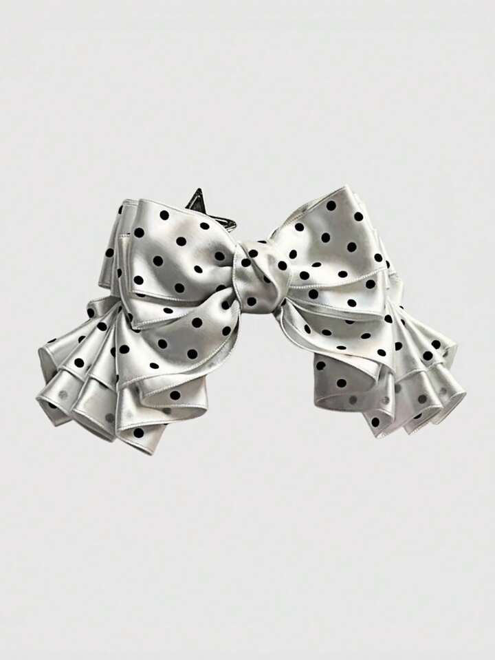 Anime 1pc White Kawaii Sweet Cute Retro Classic Polka Dot Bow Star Keychain, Can Be Used As Bag Charm Or Clip On Pants