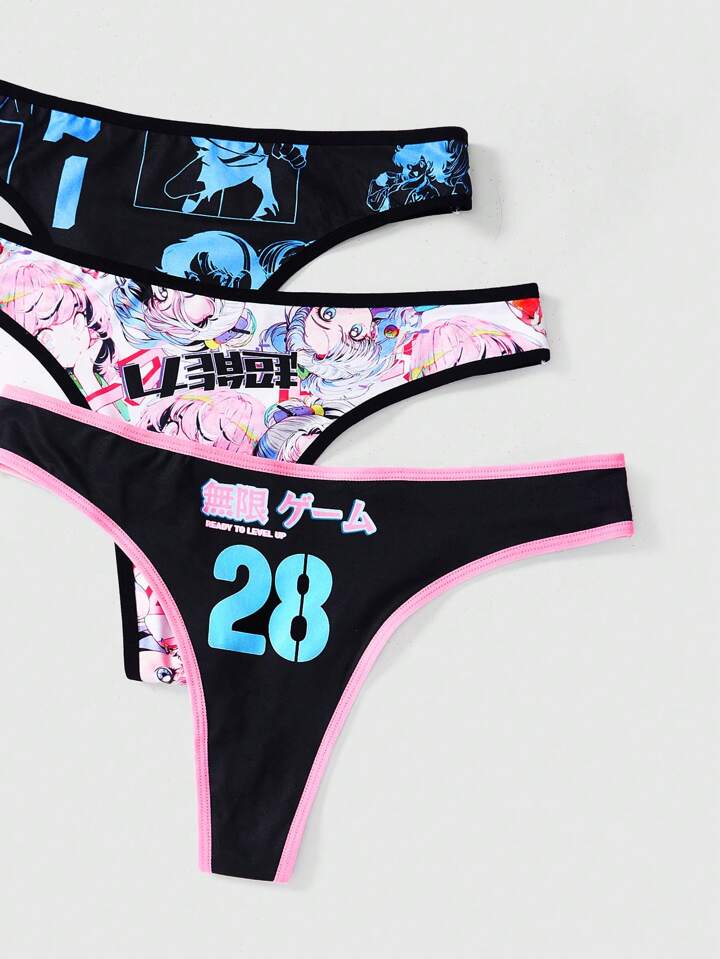 Anime 3pcs/set Women's Underwear With Cartoon Characters Print
