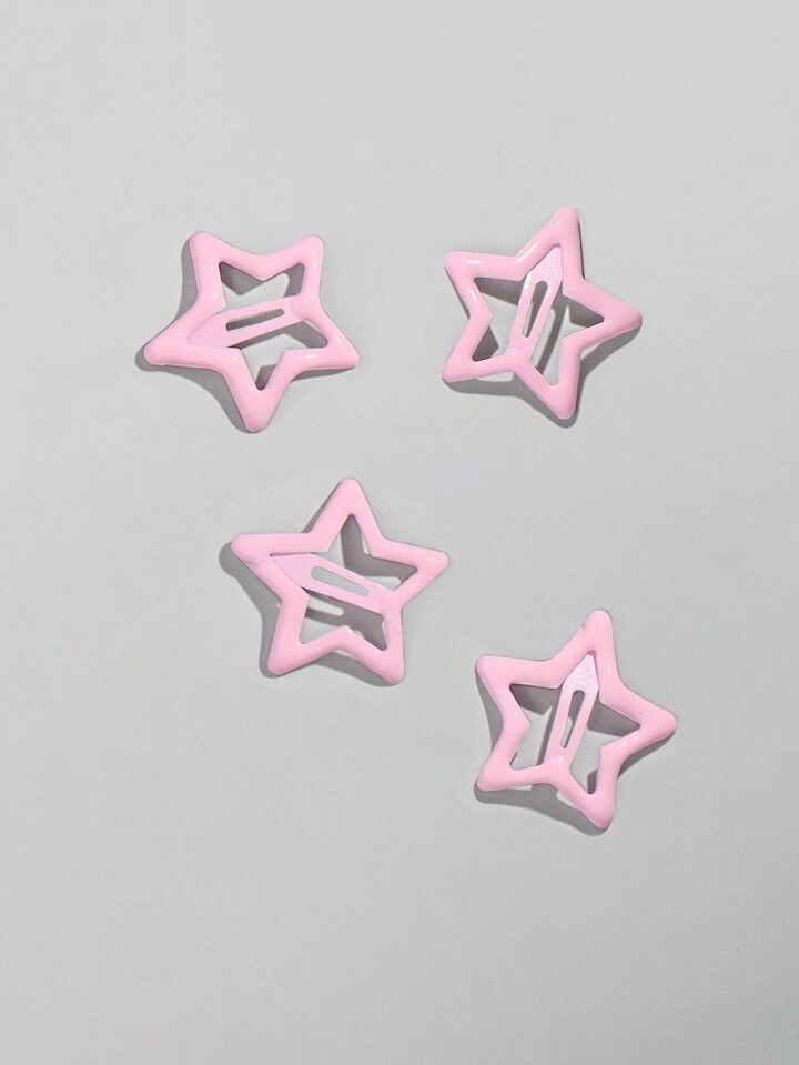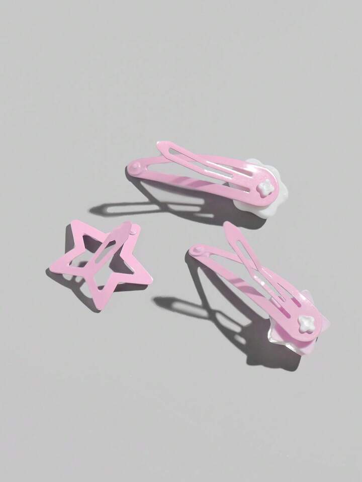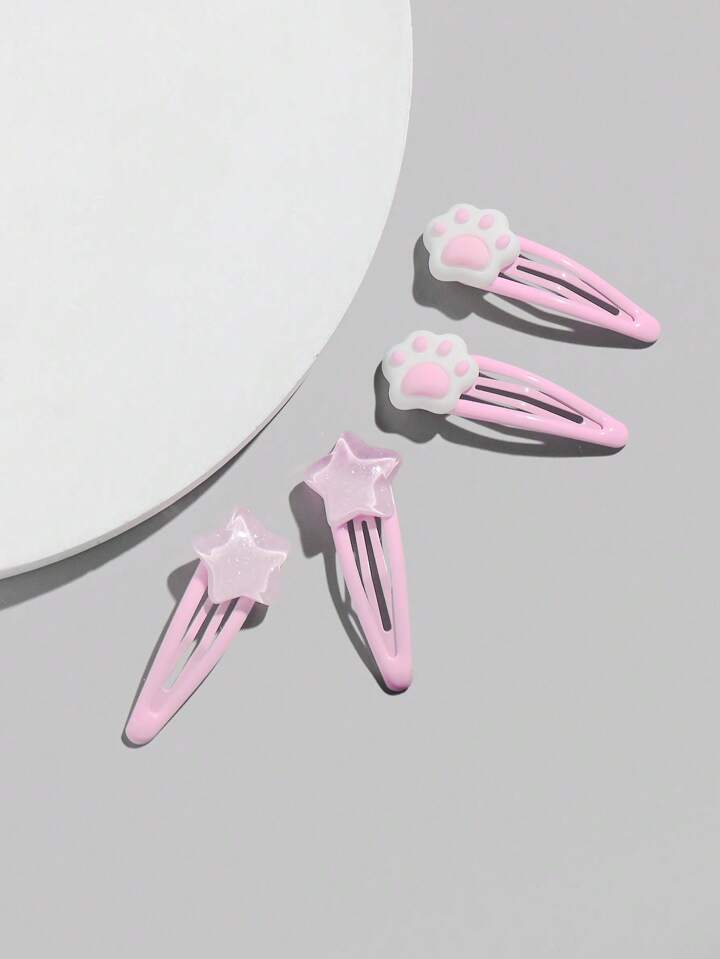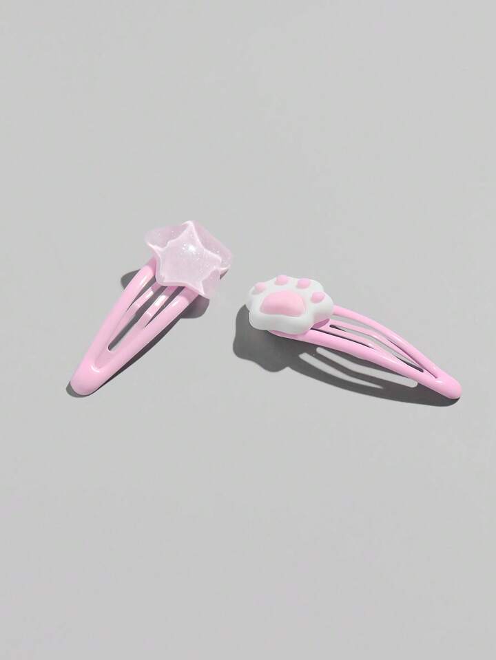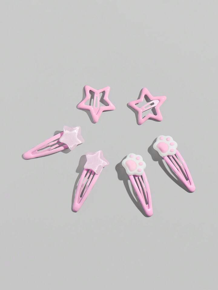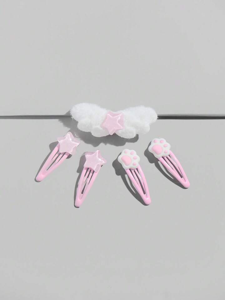 Anime 9pcs New Arrival Y2k Style Pink Spray Painted Oil-Dripping Wing, Star, Cat Claw Mixed Design Hair Clips For Teen Girls