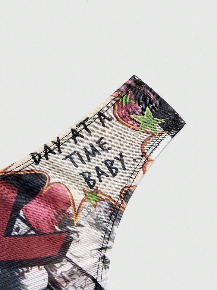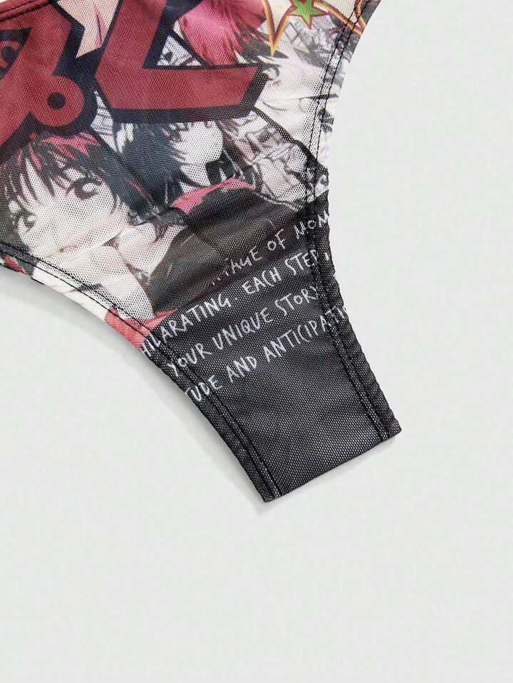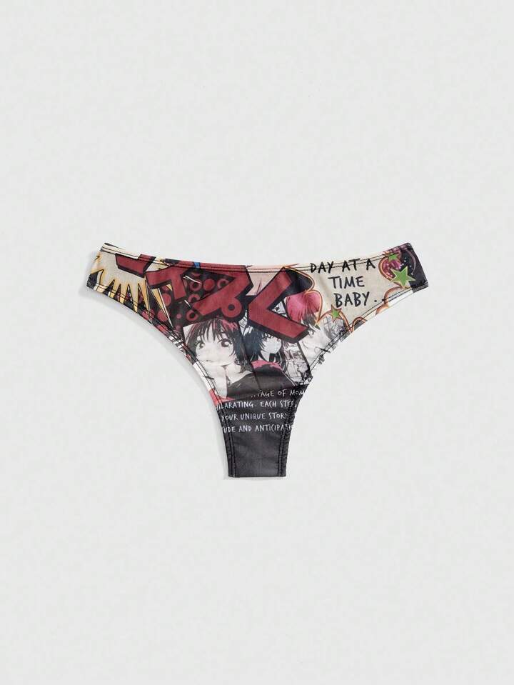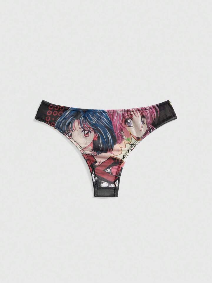Anime Cartoon Mesh Print Lightweight Women's Thong Panties