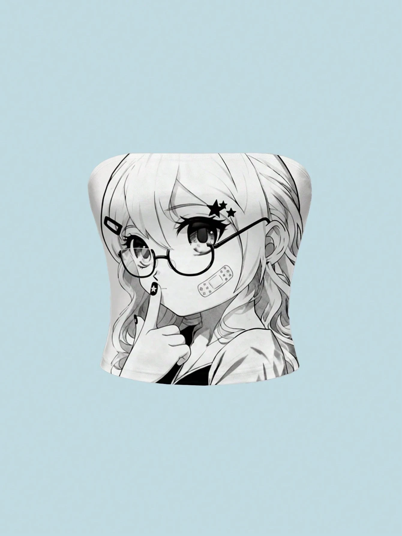 Anime Dark Girl Bandeau Top, Black & White, For Women