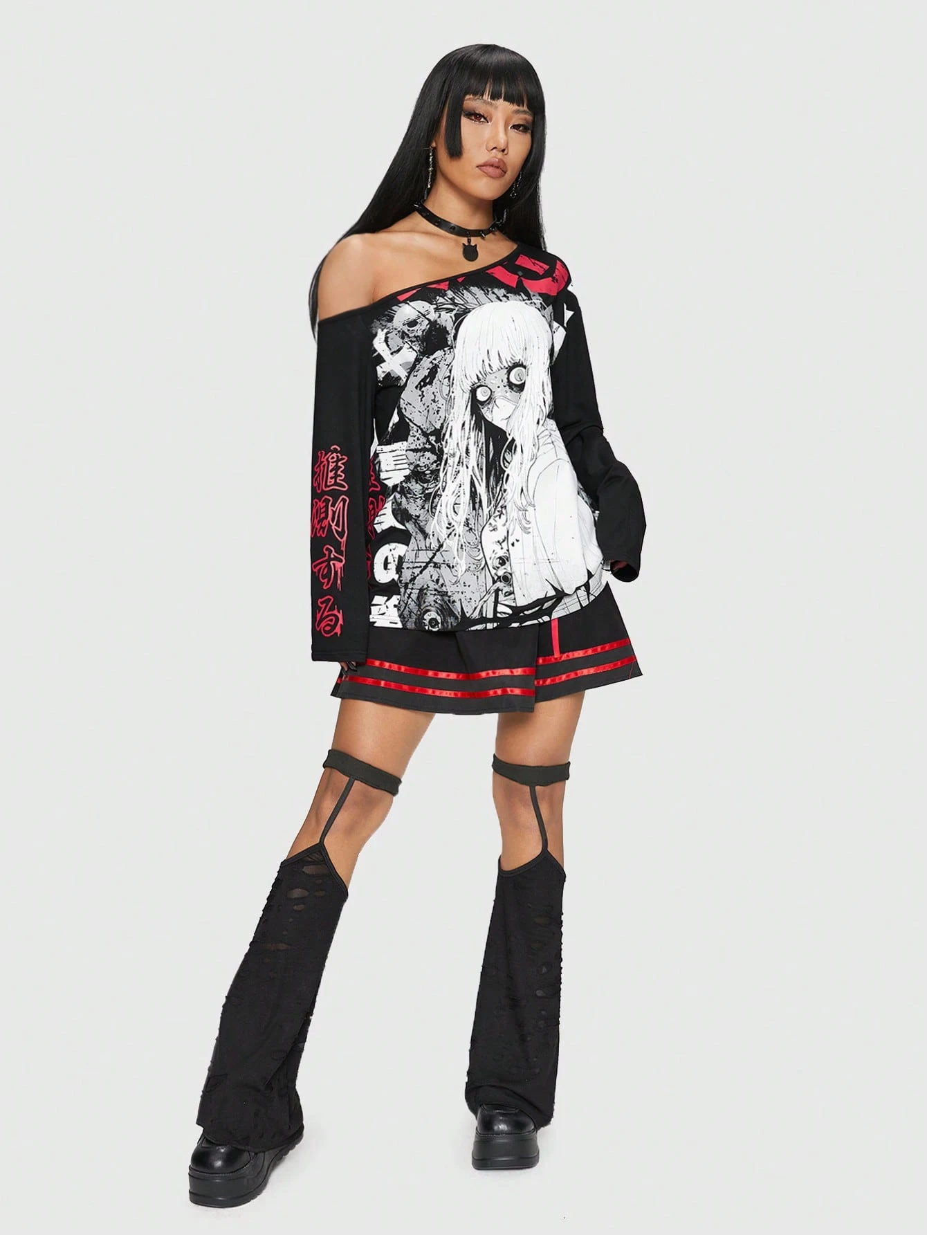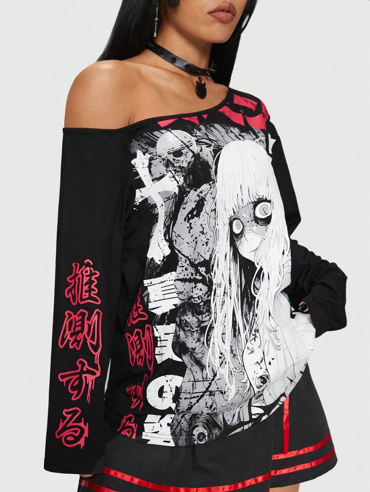 Anime Figure Graphic Asymmetrical Neck Tee