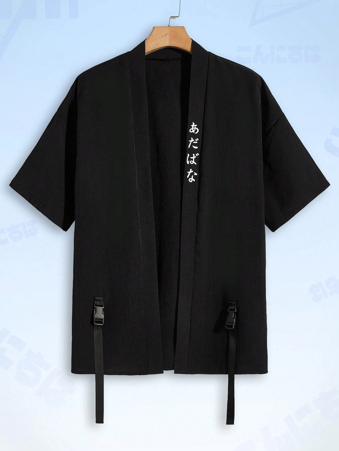 Anime Guys Japanese Letter Graphic Buckle Tape Panel Kimono