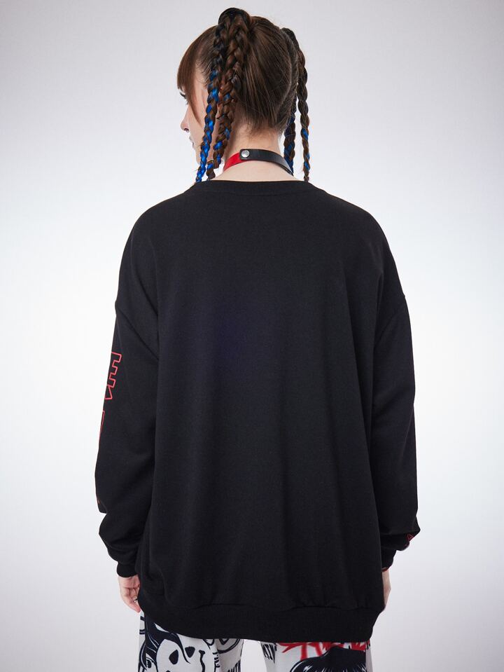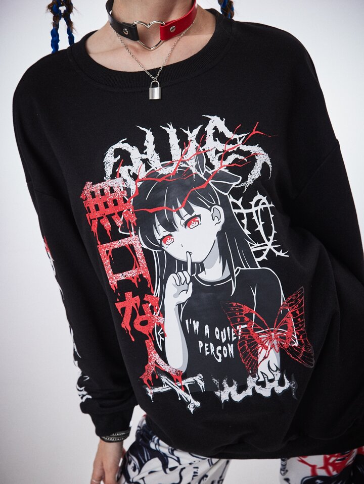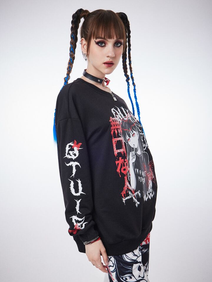 Anime Japanese Writing Figure Graphic Drop Shoulder Pullover