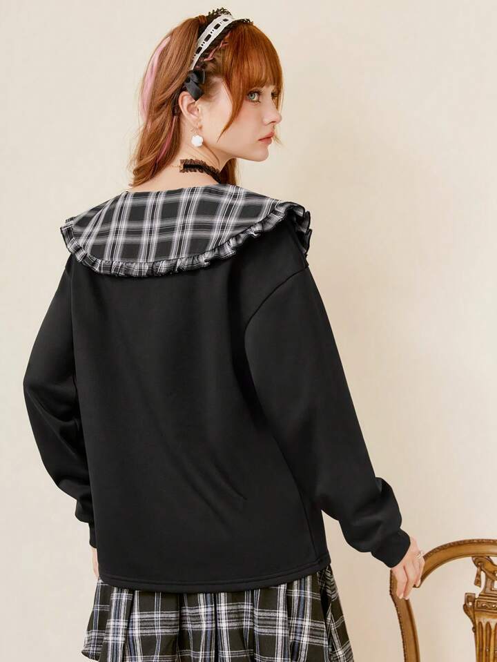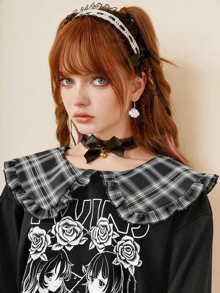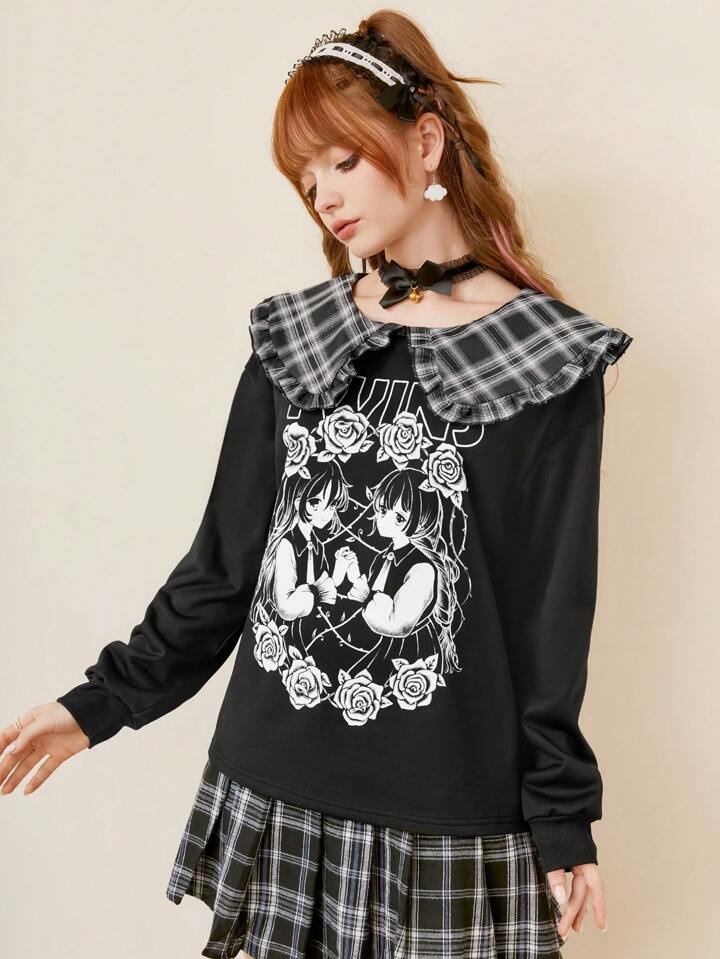 Anime Ladies' Cute Peter Pan Collar 2 In 1 Printed Sweatshirt