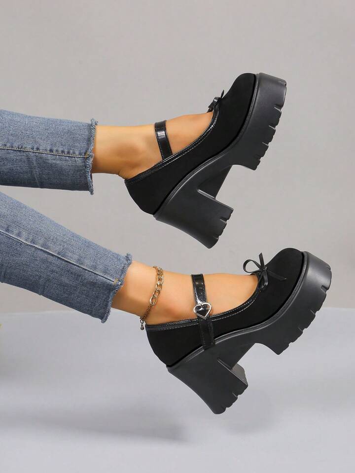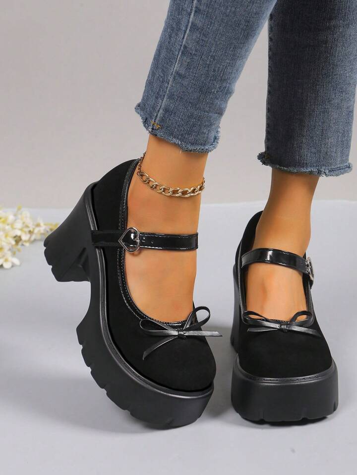Anime Ladies Wedge Heel Mary Jane Shoes With Thick Sole And Closure
