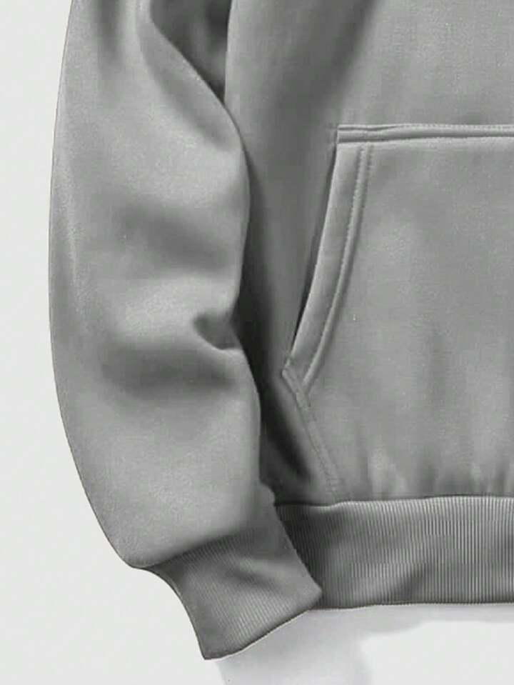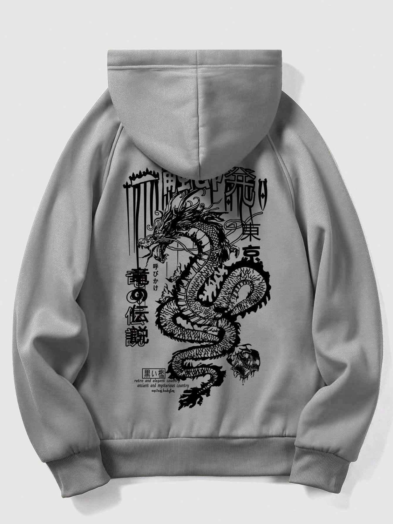 Anime Men Grey Dragon Pattern Hooded Long Sleeve Sweatshirt