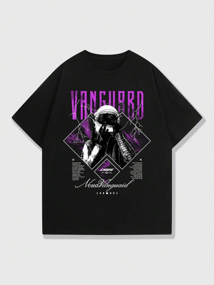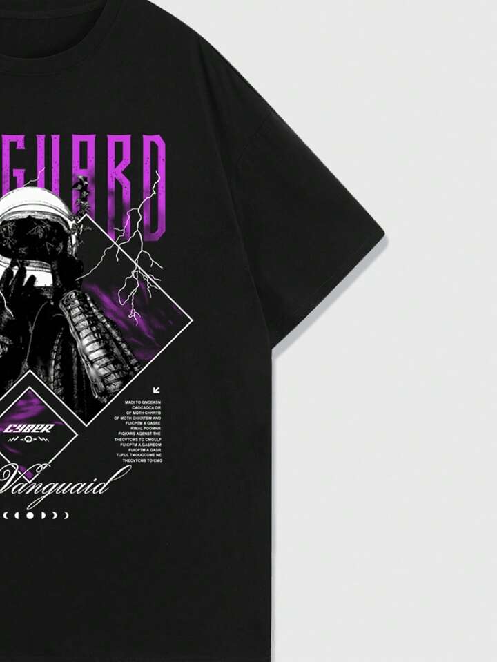 Anime Men Helmet & Character Print Short Sleeve T-Shirt, Summer