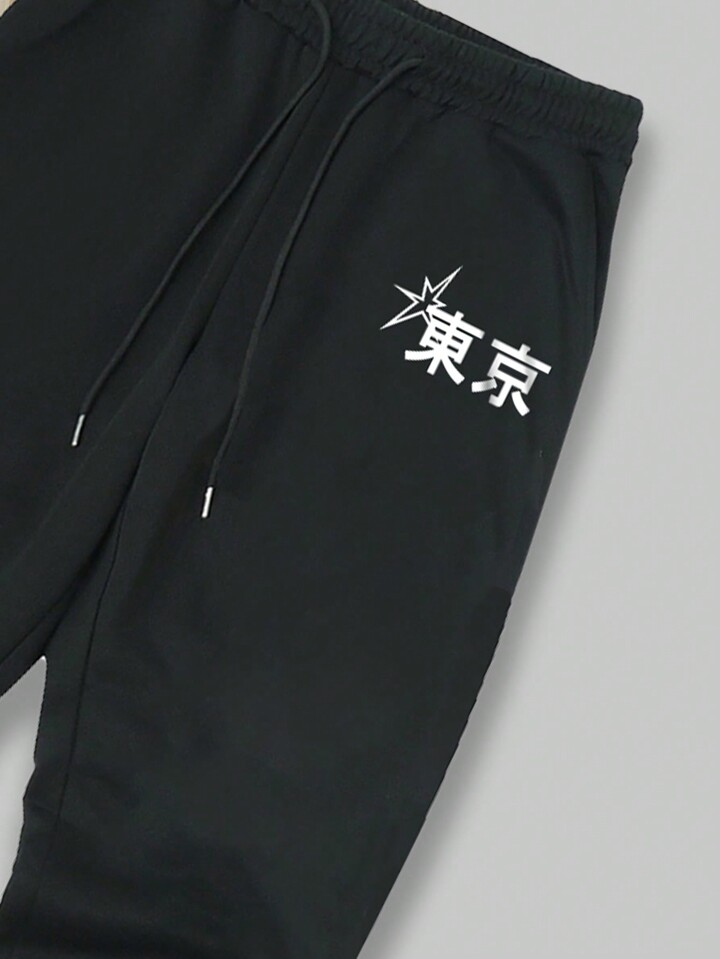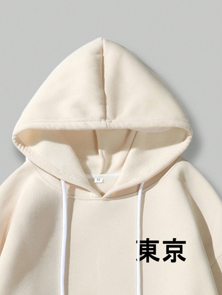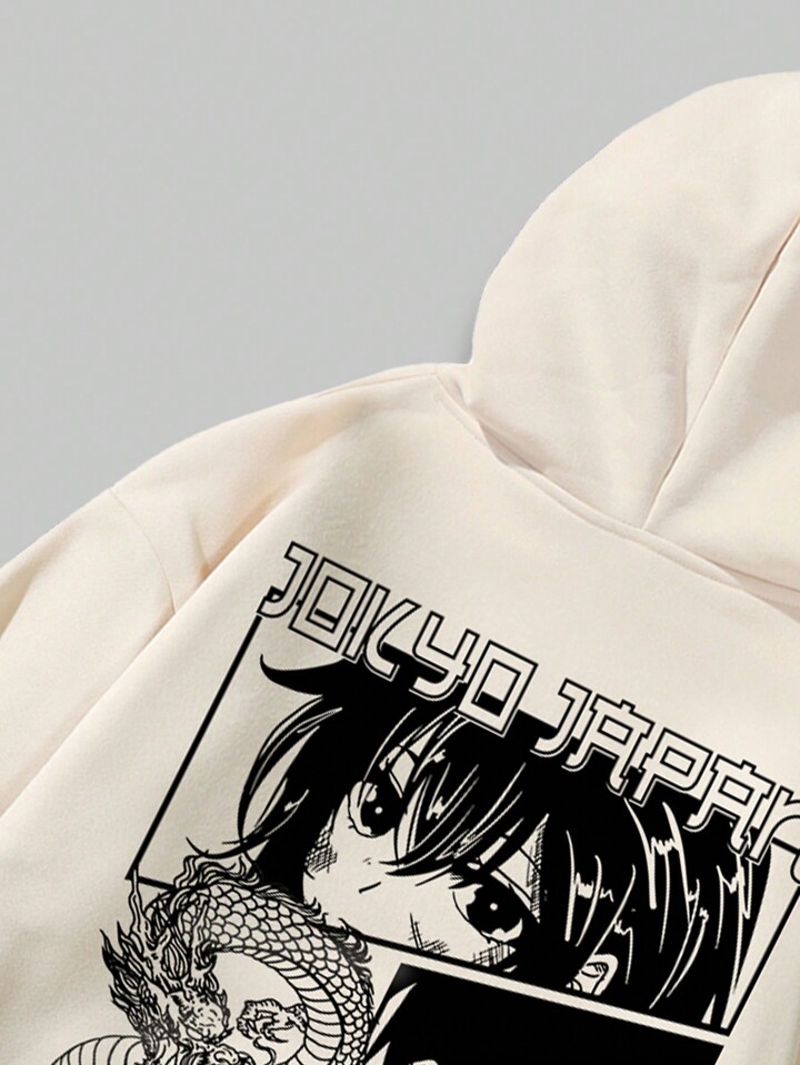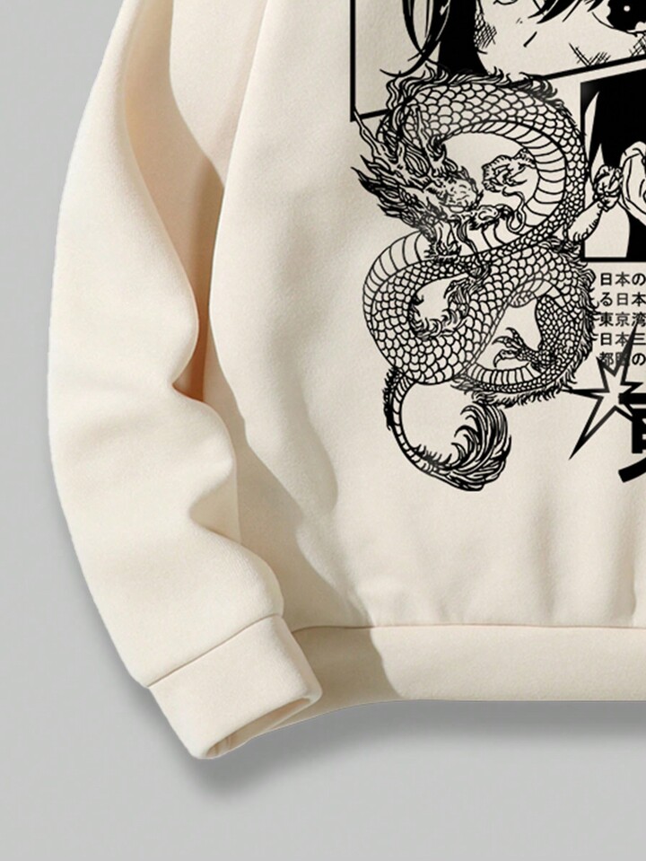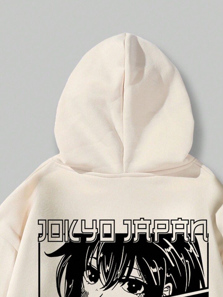 Anime Men Japanese Slogan & Figure Graphic Hoodie & Drawstring Waist Sweatpants
