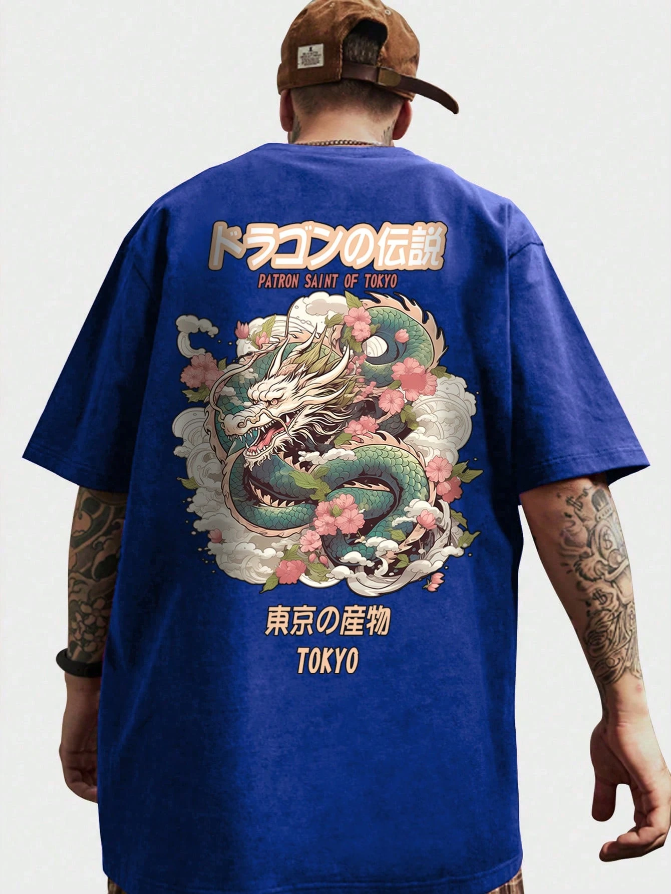 Anime Men Loose Fit Drop Shoulder Dragon Printed Casual T-Shirt