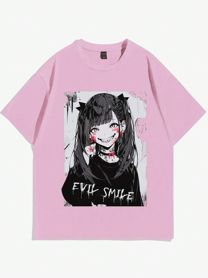 Anime Men's Cartoon Character And Letter Printed T-shirt
