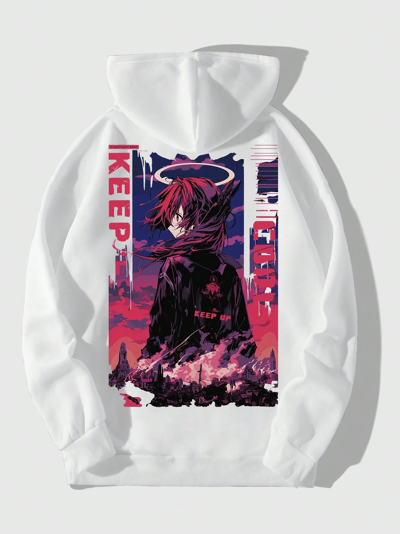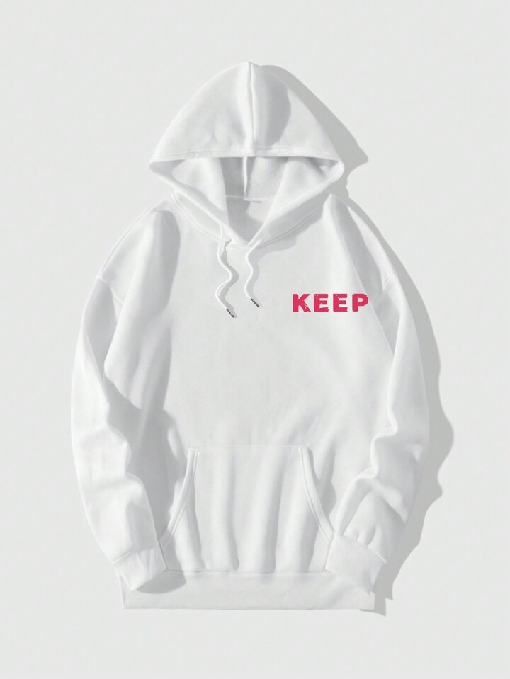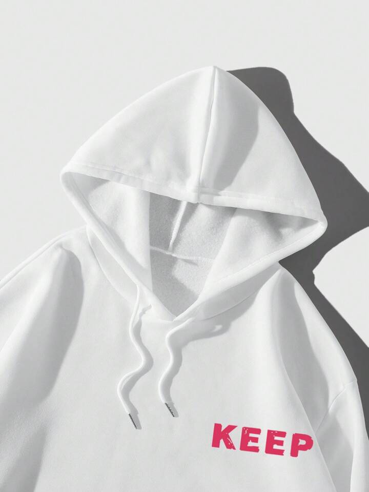 Anime Men's Cartoon Character & Letter Printed Hooded Sweatshirt With Drawstring