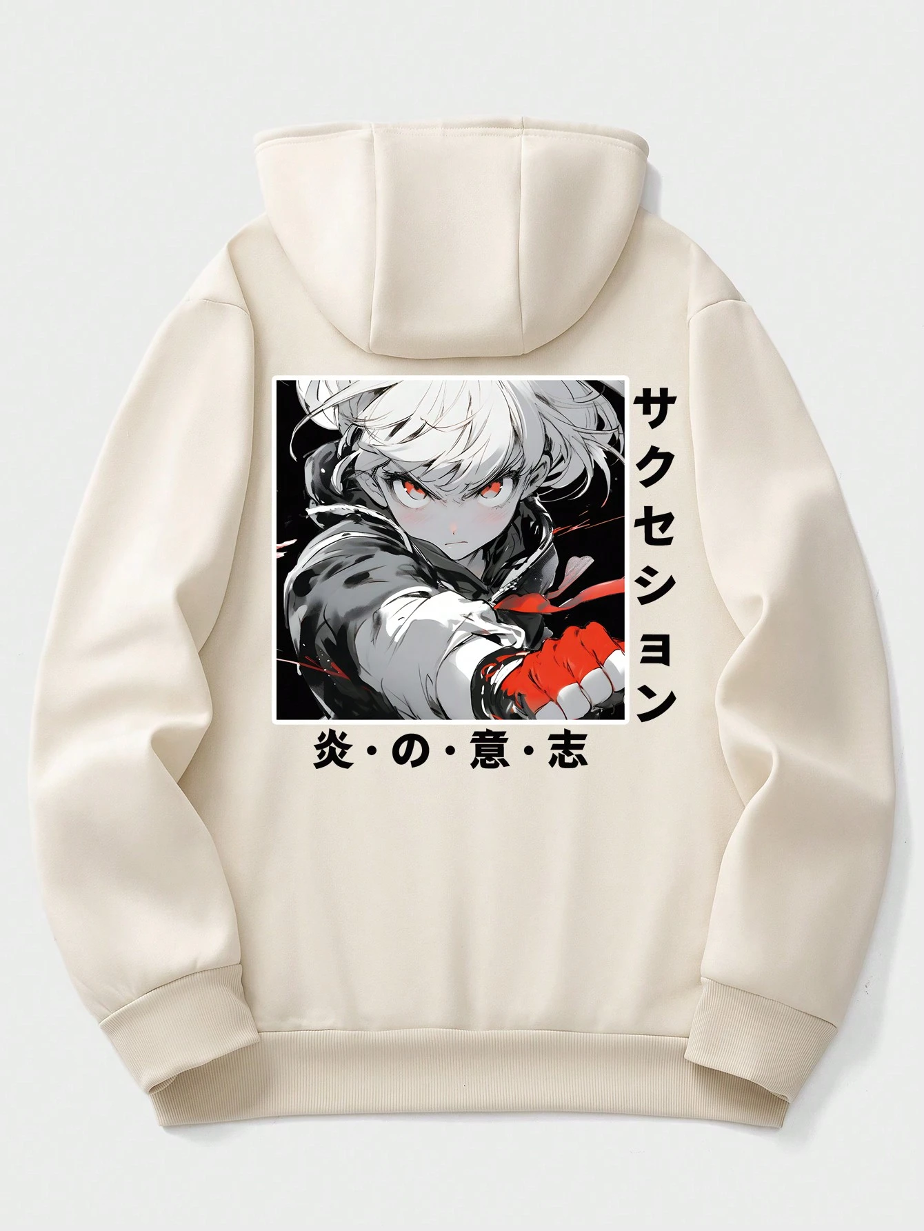 Anime Men's Casual White Hoodie With Cartoon Character Print
