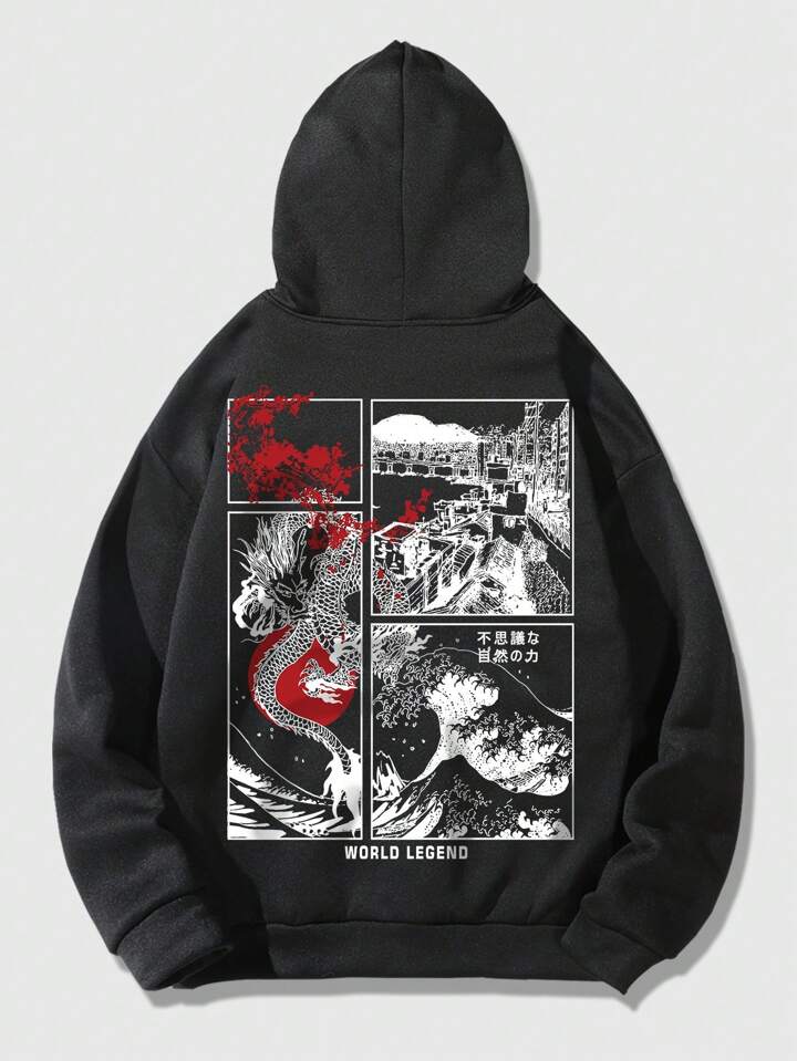 Anime Men's Dragon Pattern Hooded Sweatshirt