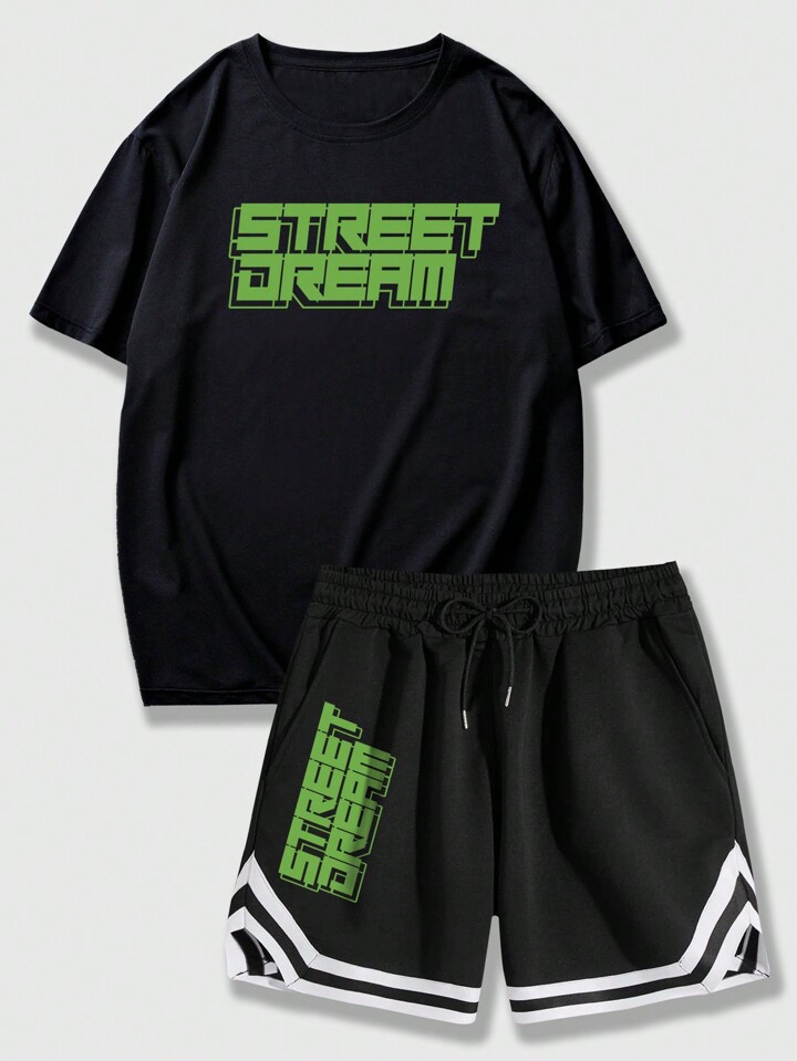 Anime Men's Graphic Print Crew Neck T-Shirt And Shorts Two-Piece Set