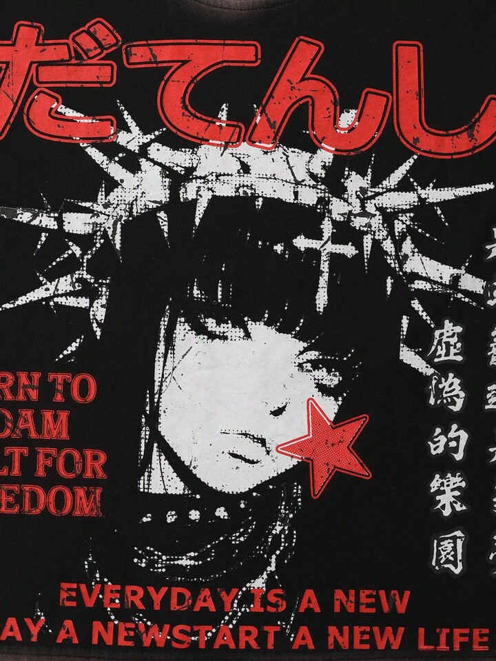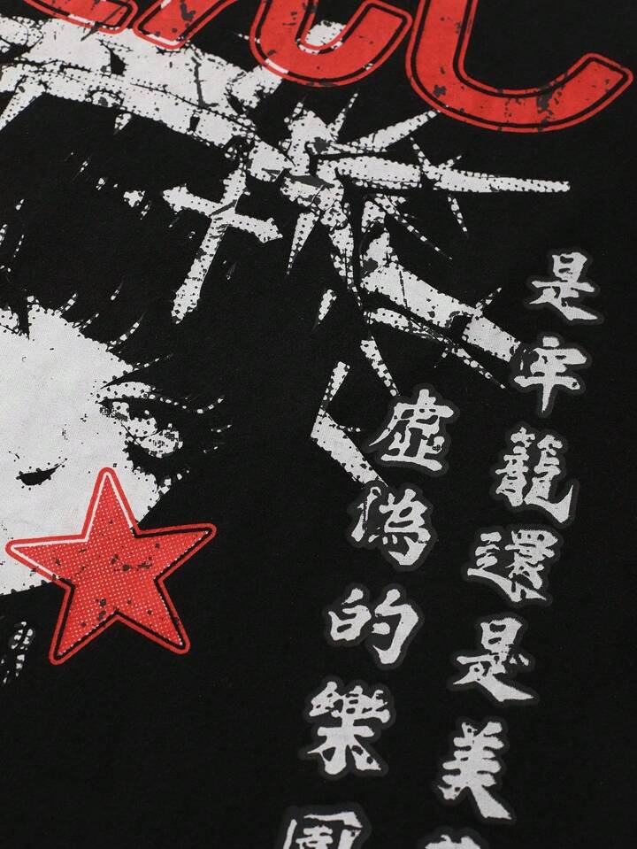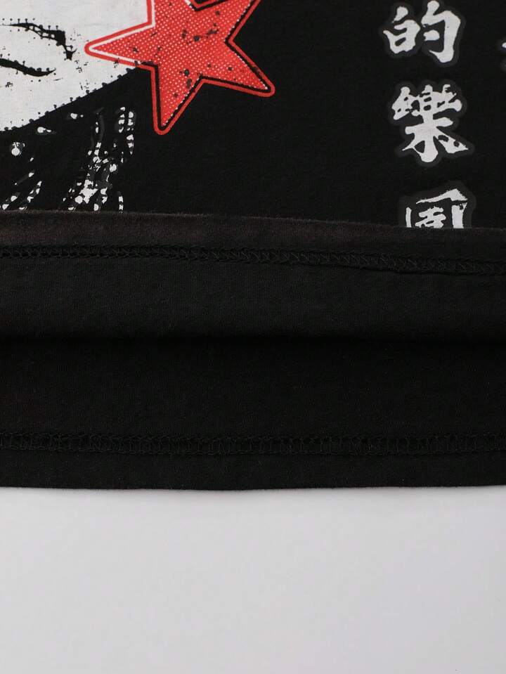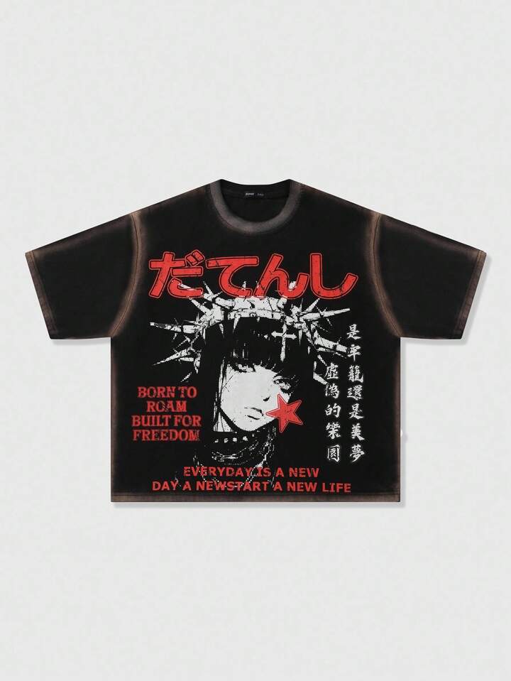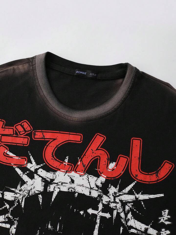 Anime Men's Japan Style Spray Painted Loose Raglan Short Sleeve T-Shirt