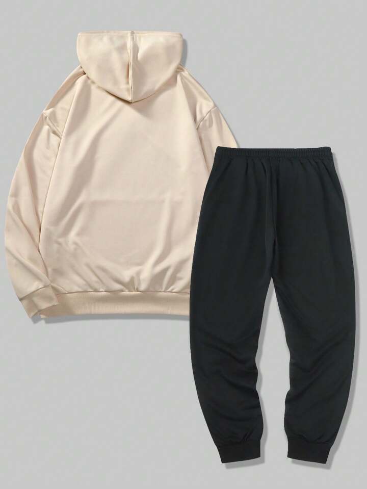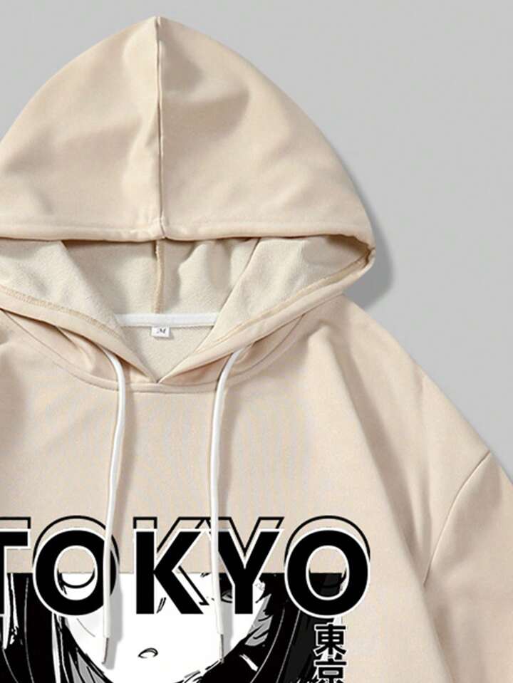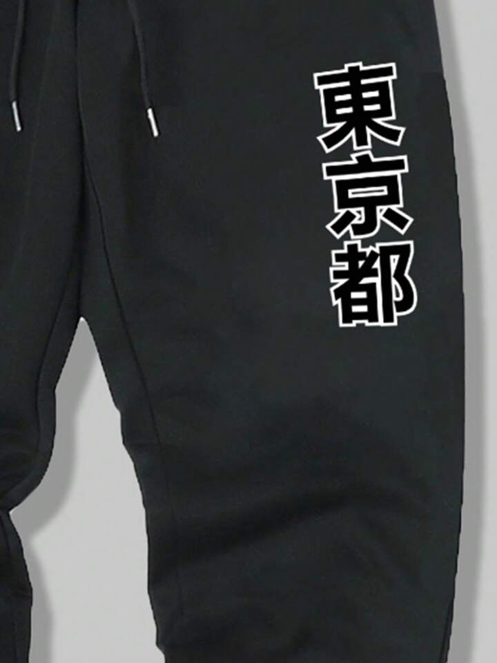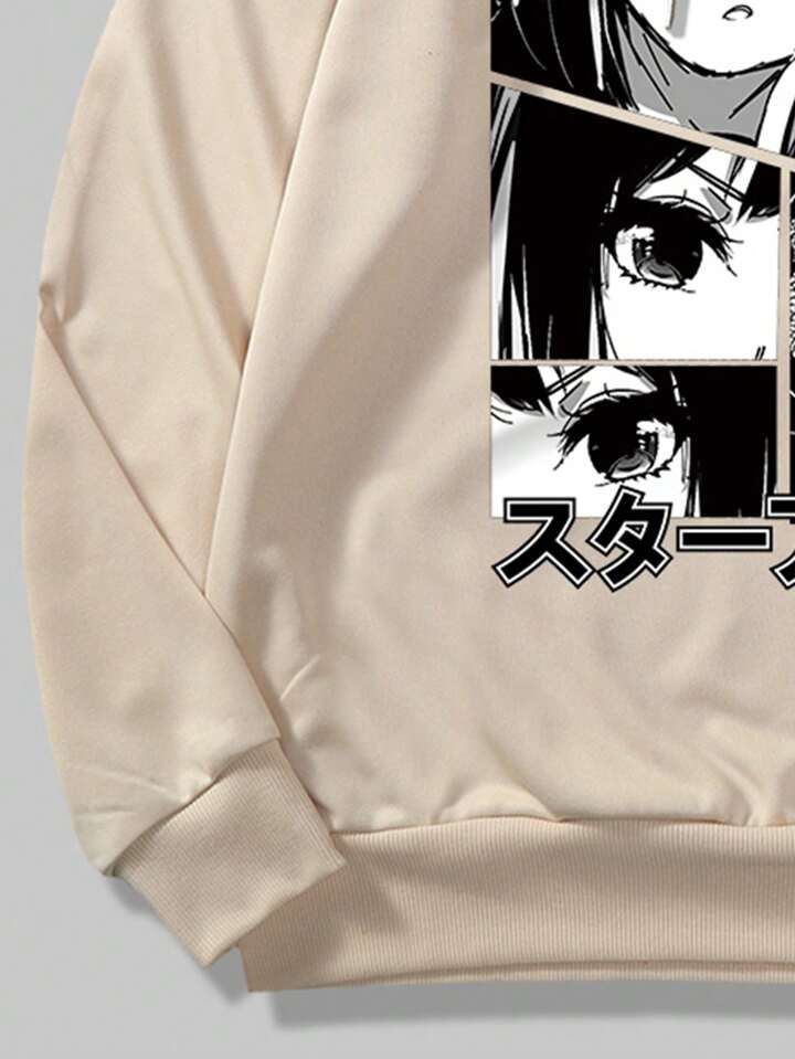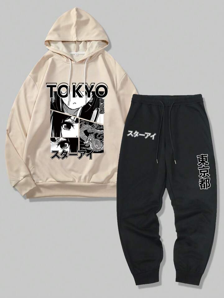 Anime Men's Letter & Cartoon Character Printed Hoodie And Sweatpants Set