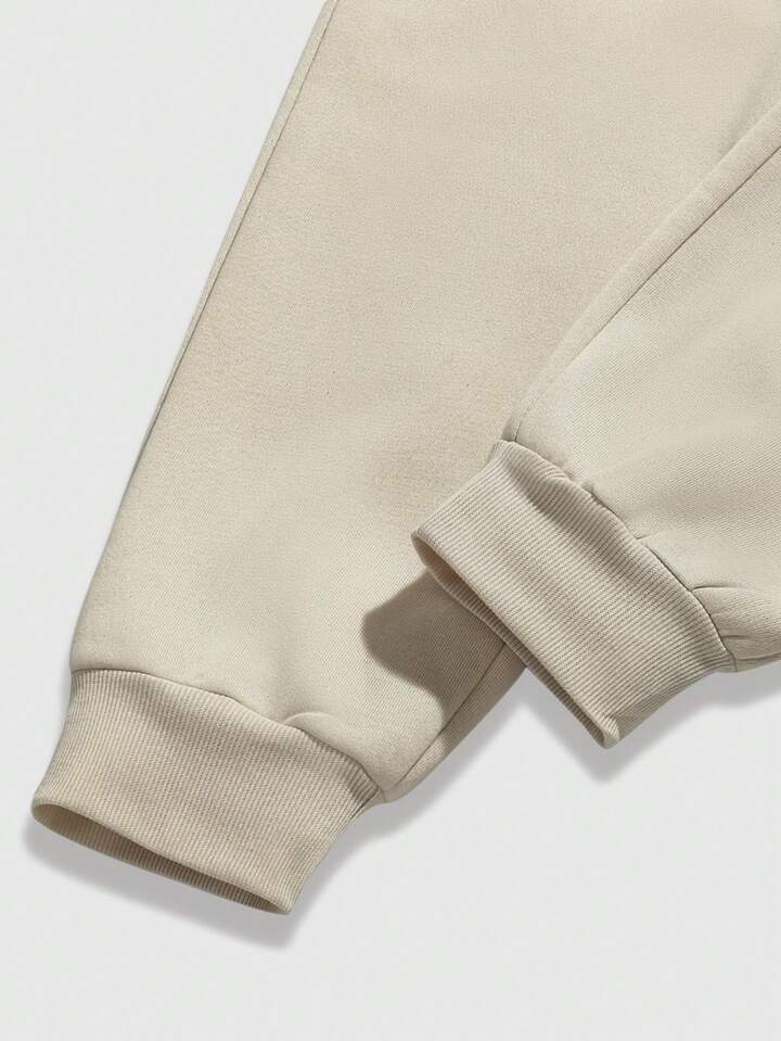 Anime Men's Letter & Flower Print Fleece Hoodie And Sweatpants Set With Drawstring, 2pcs