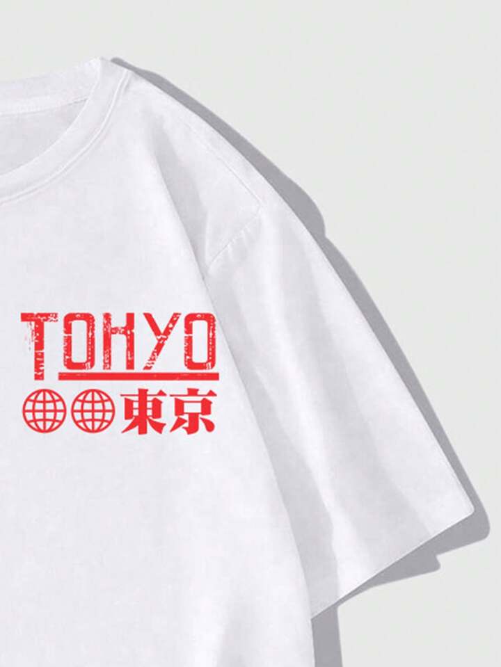 Anime Men's Letter Print Short Sleeve T-Shirt , Basketball Jersey And Double Layer Sports Shorts Set