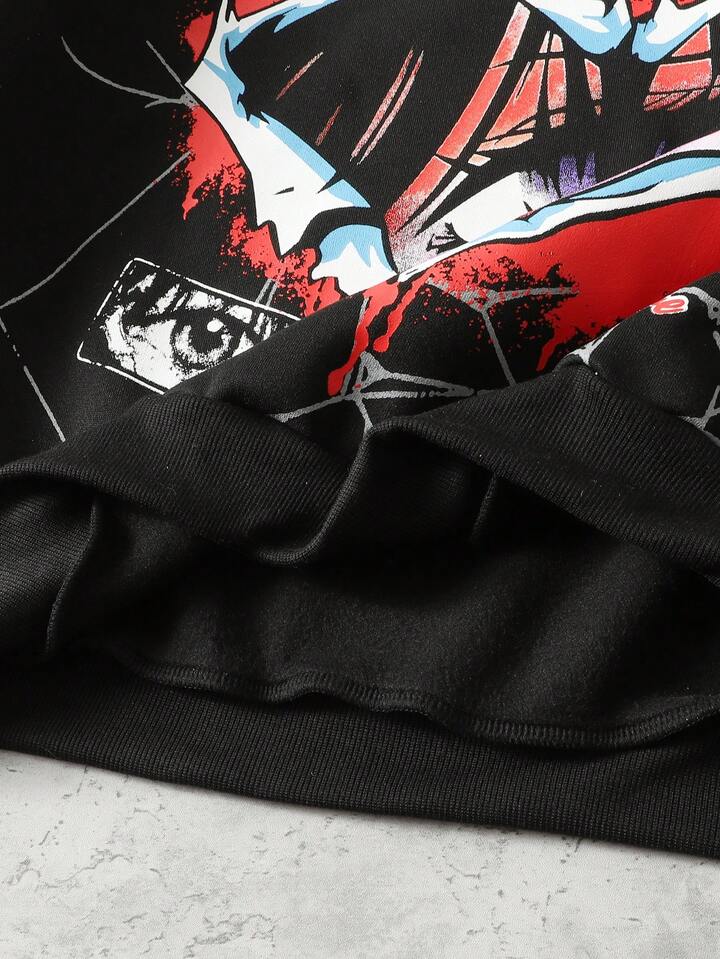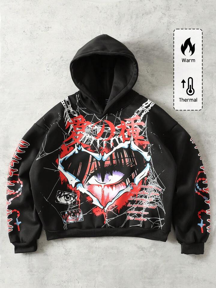 Anime Men's Loose Fit Graphic Print Hoodie, Oversized Silhouette, Long Sleeve Top