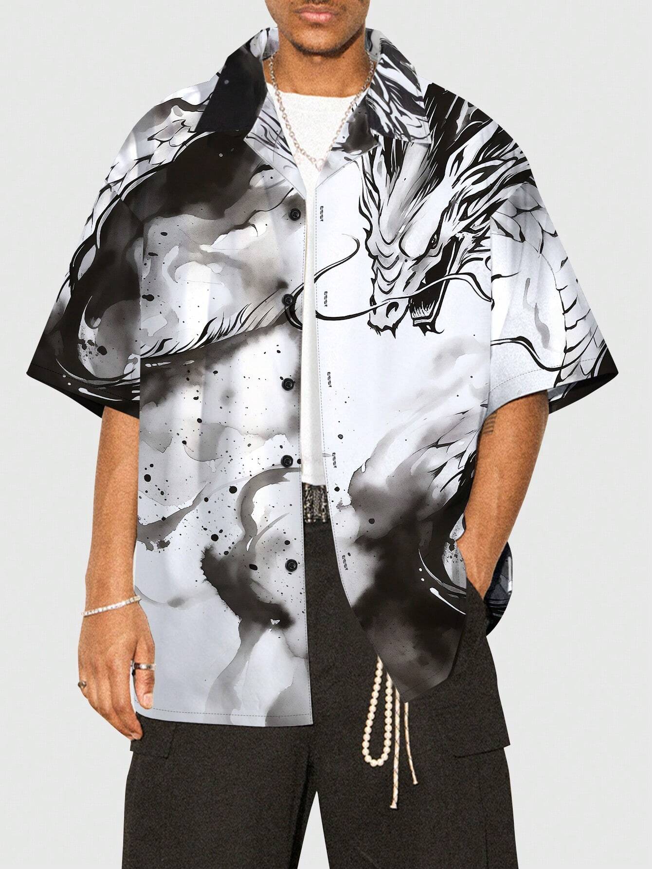 Anime Men's Short Sleeve Shirt With Dragon Print