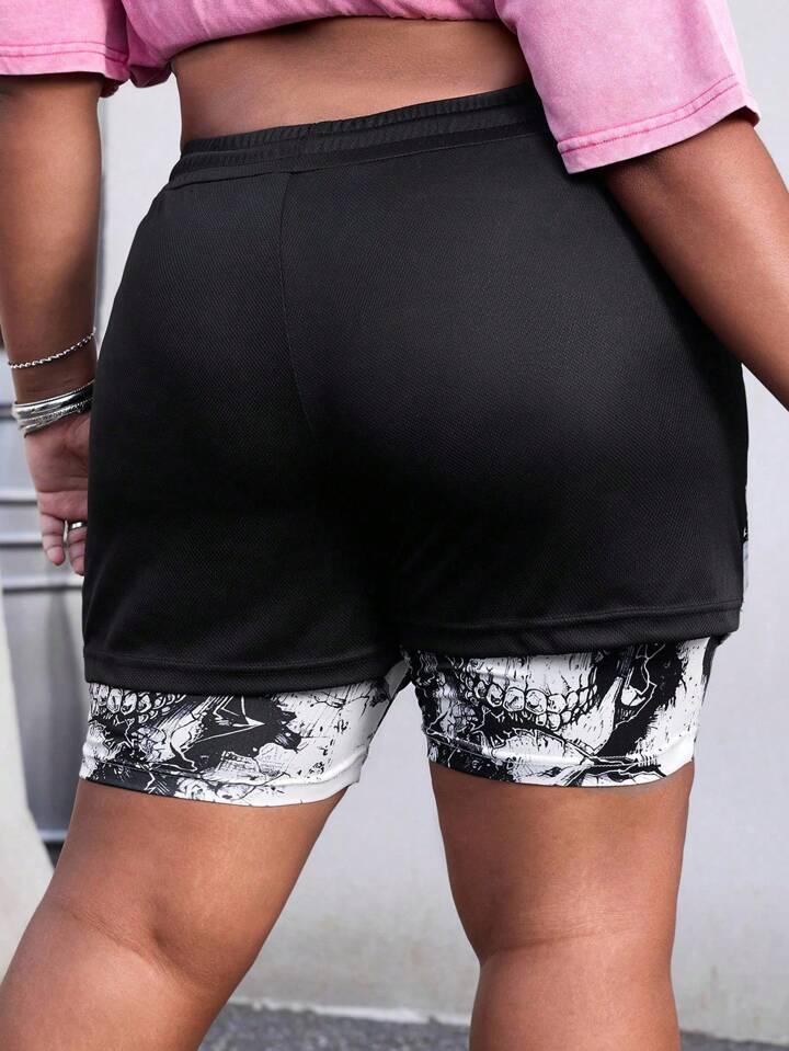 Anime Plus Size Women Animal Print Drawstring Waist Casual Layered Shorts