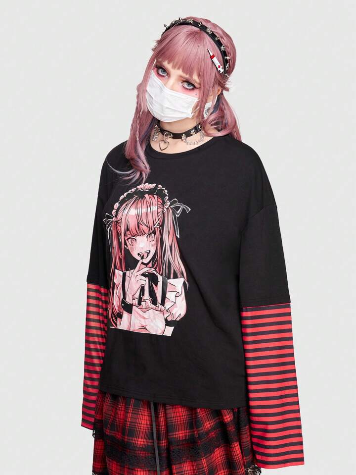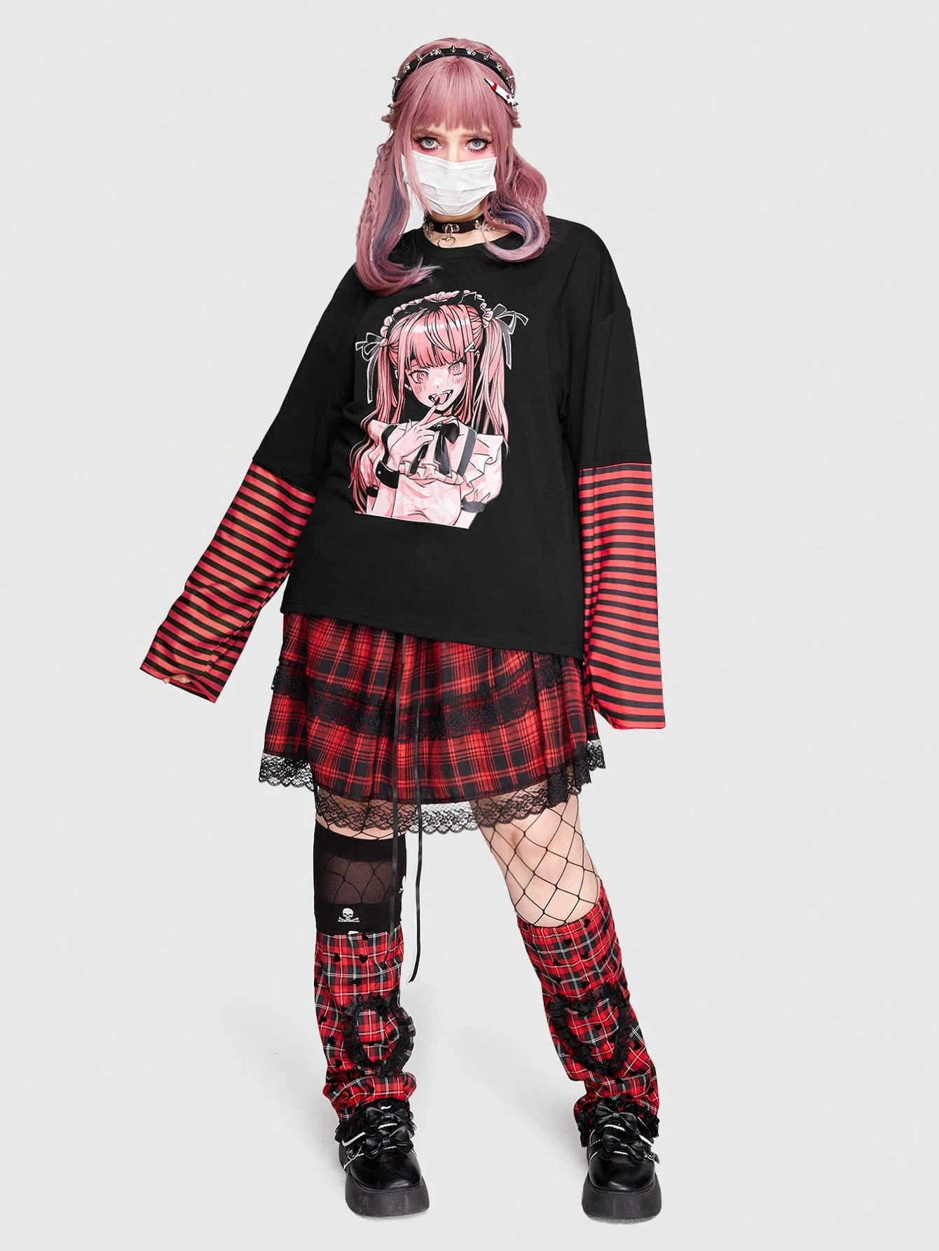 Anime Plus Striped Figure Graphic 2 In 1 Tee