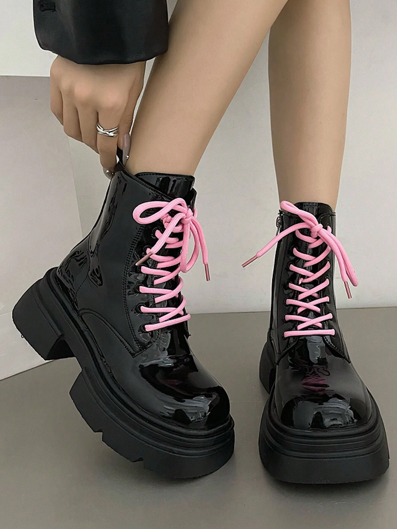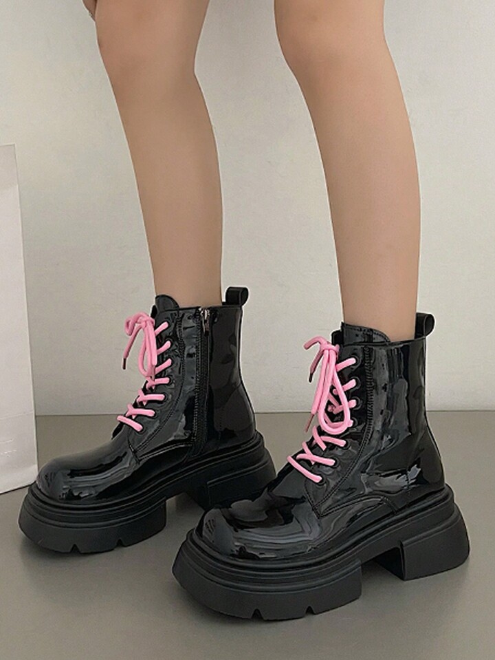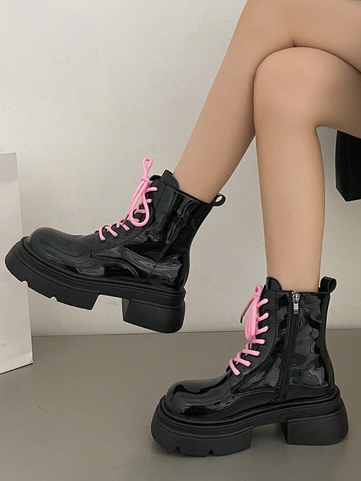 Anime Sweet And Cool British Style Thick-Soled Fashion Lace-Up Ankle Boots