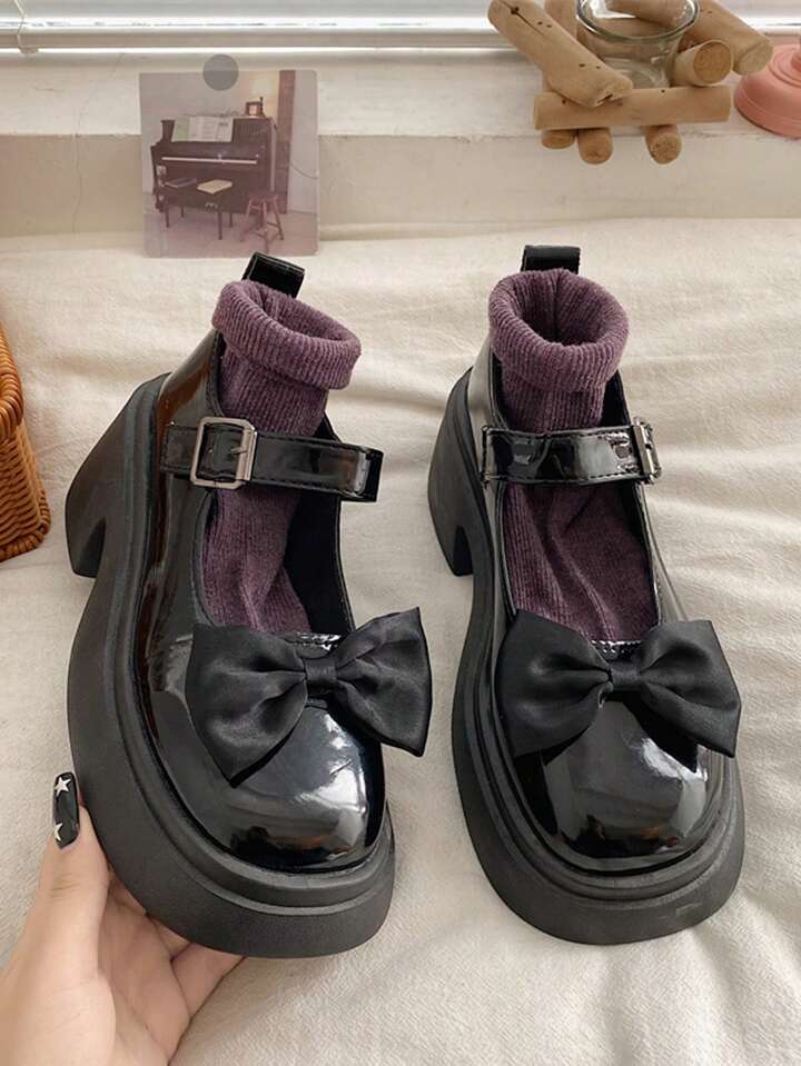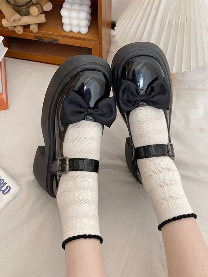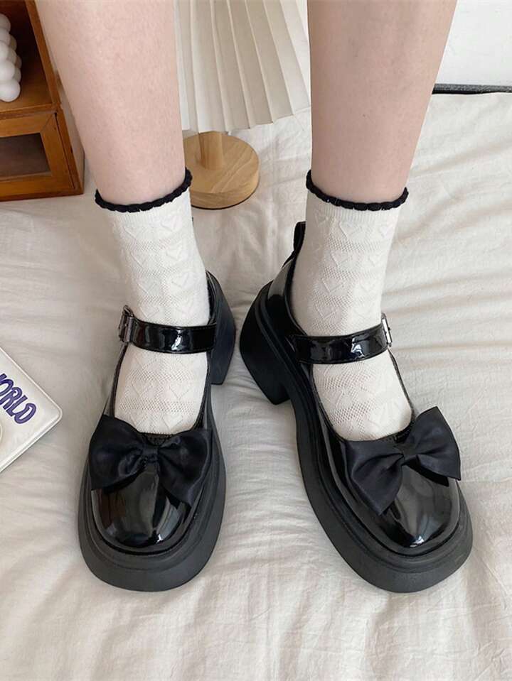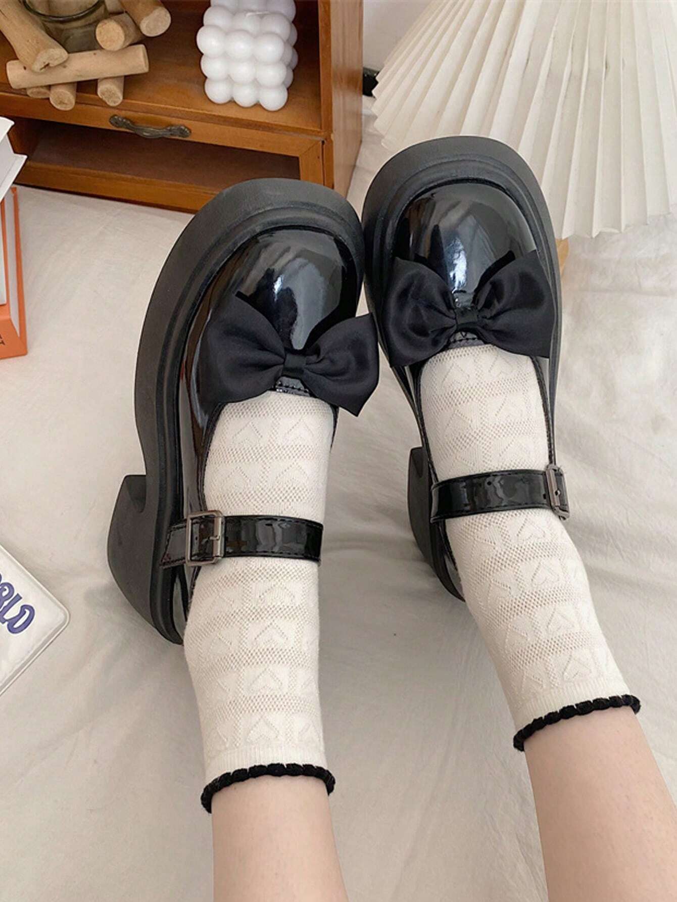 Anime Women Bow Decor Flatform Mary Jane Shoes, Preppy Outdoor Shoes