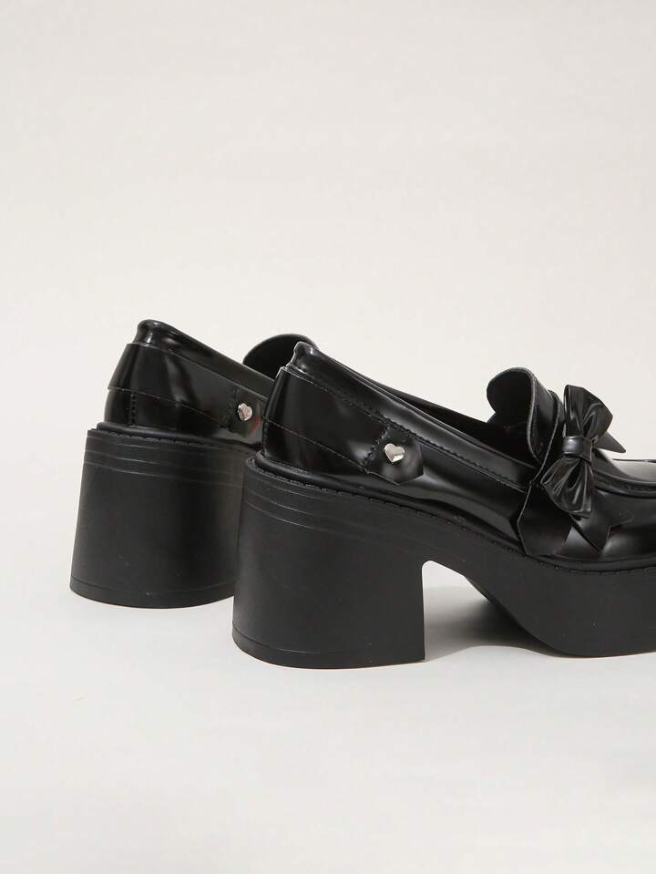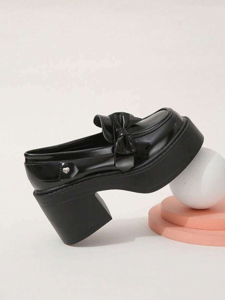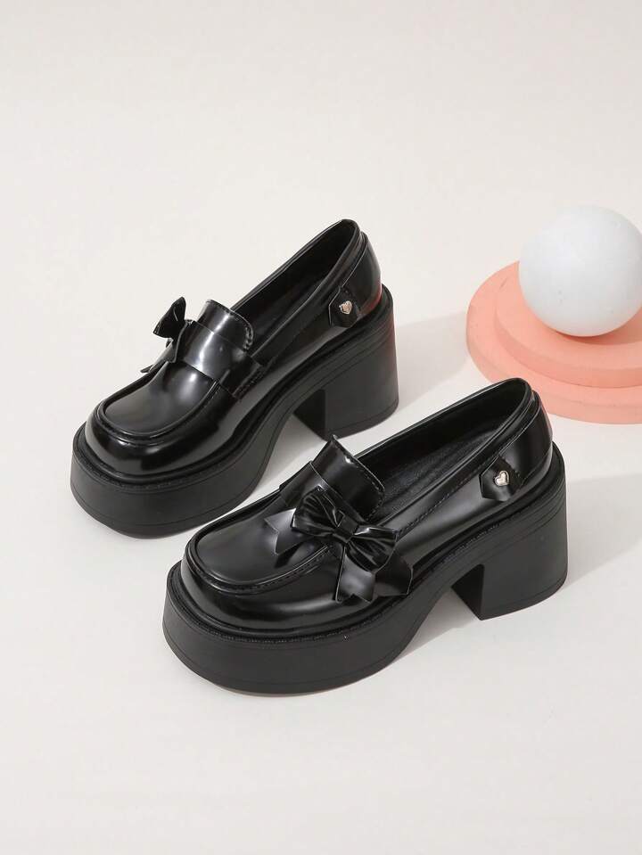 Anime Women Bow Decor Platform Loafers, Preppy Outdoor Flatform Shoes