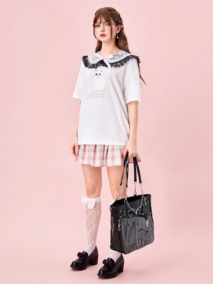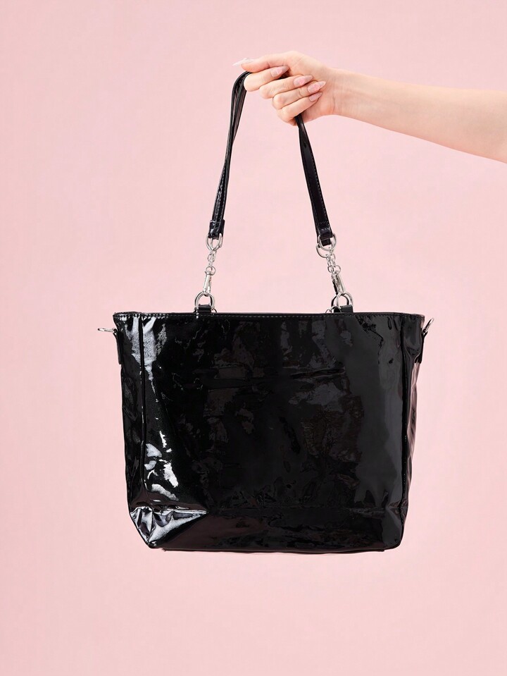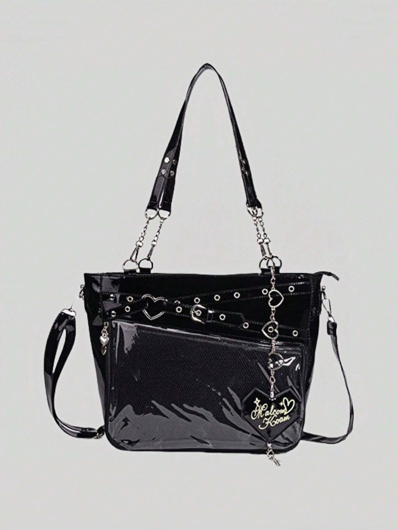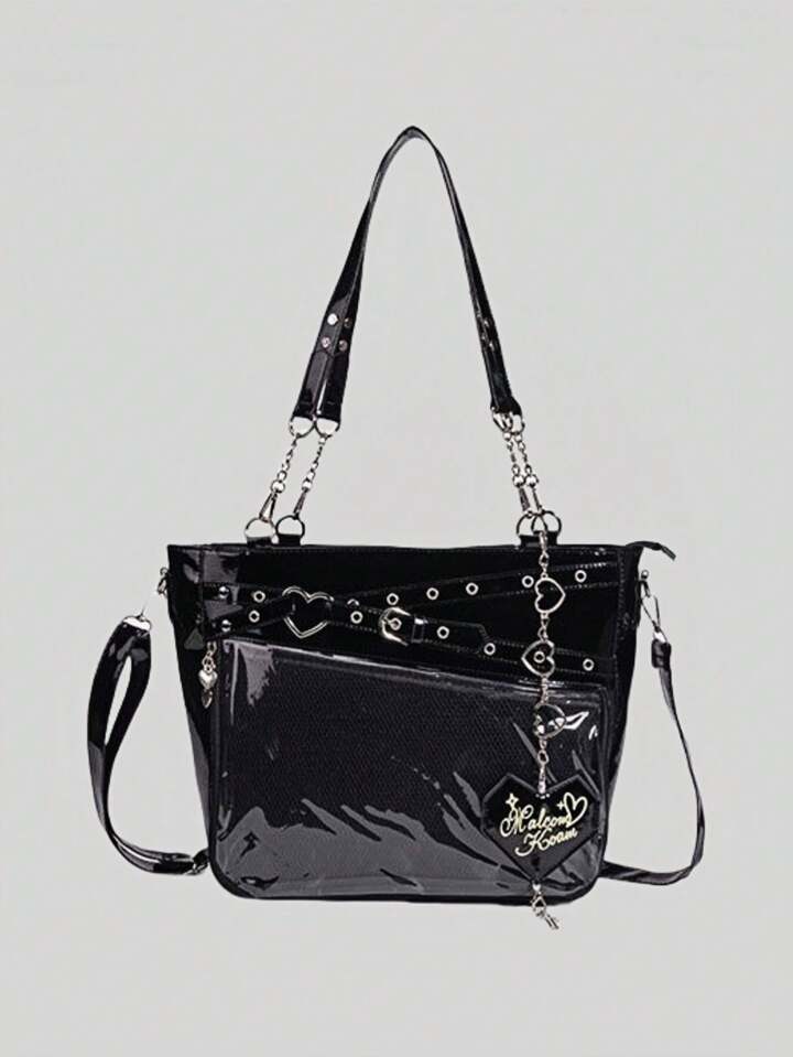 Anime Women's Y2K Punk Style Clear Layer Big Capacity Tote Bag, Lolita Heart Chain Shoulder Bag