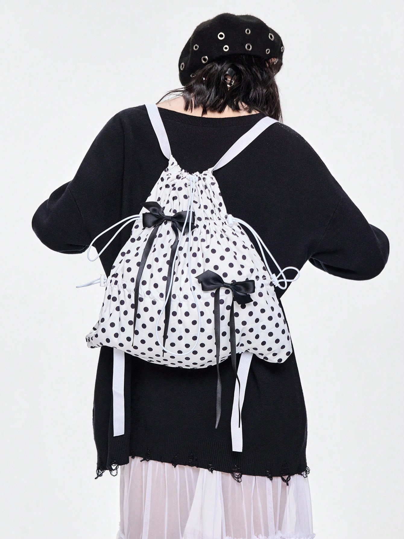 Anime Y2K Cute & Sexy Bow Drawstring Backpack, Minimalist Silver Tech-Inspired Cinch Pouch, Waterproof Lightweight Large Capacity Foldable Storage Bag, Gym Bag, Suitable For Casual, Travel, Commute And Daily Use