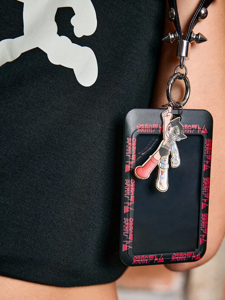 Astro Boy X ROMWE 1pc Cartoon Figure Graphic Keychain Card Holder Office Bag Charm Punk Rivet Leather Strap Mobile Phone Pendant Keyring Accessory