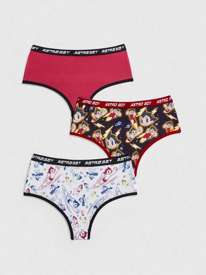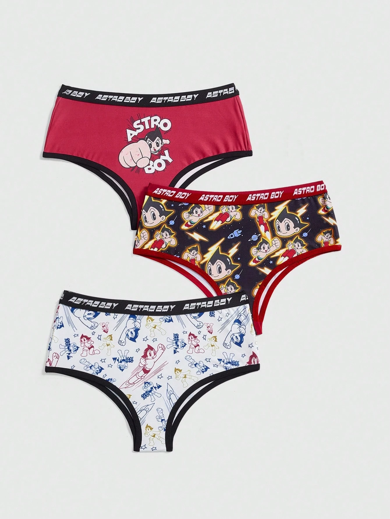 Astro Boy X ROMWE 3pcs Women's Funny Cartoon Pattern & Letter Jacquard Briefs
