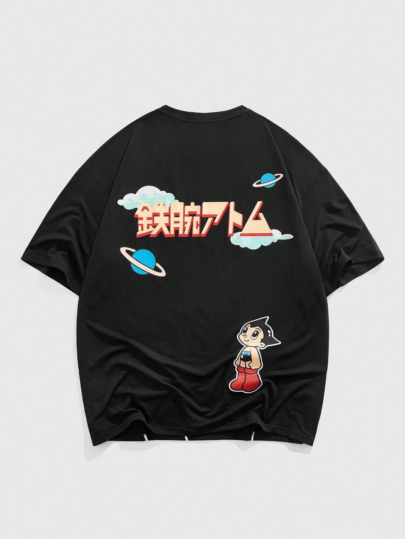 Astro Boy X ROMWE Men's Cartoon Print Loose Short Sleeve T-Shirt, Suitable For Daily Wear In Spring/Summer